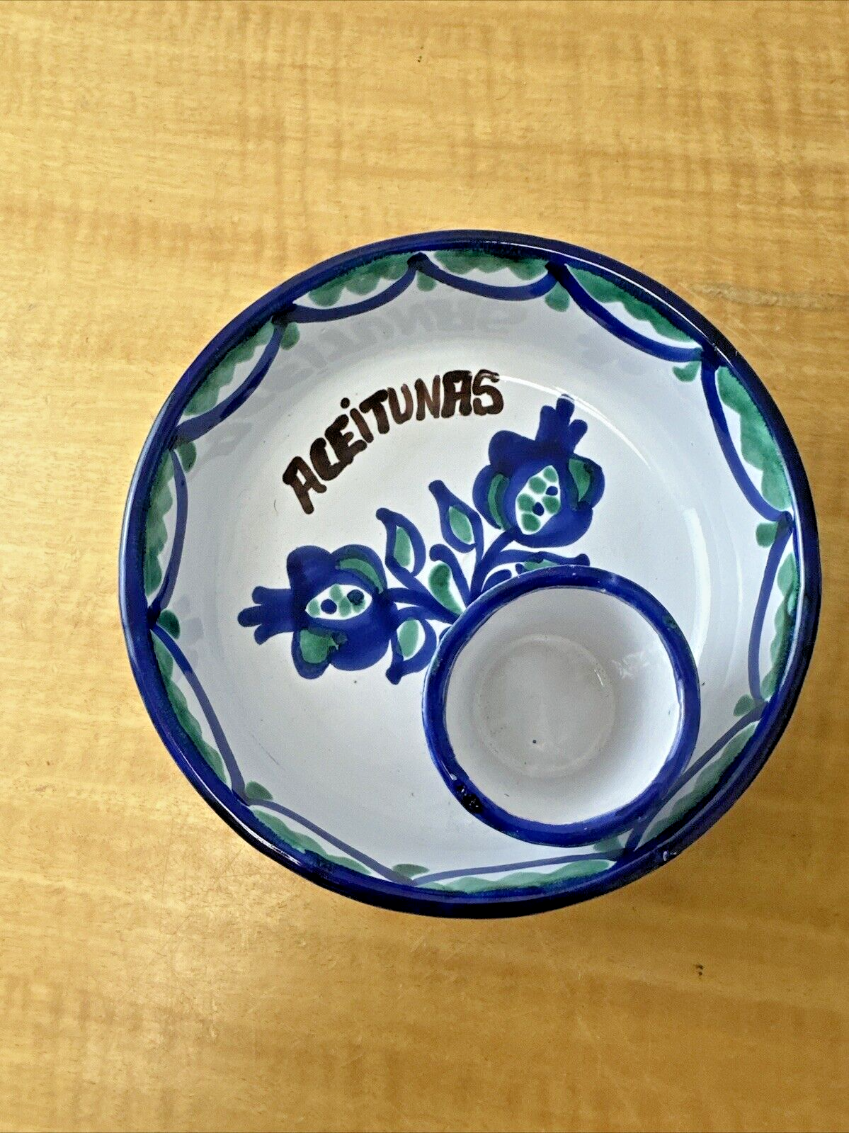 Vintage Fajalauza Hand-Painted Blue Green Chip & Dip Glazed Pottery