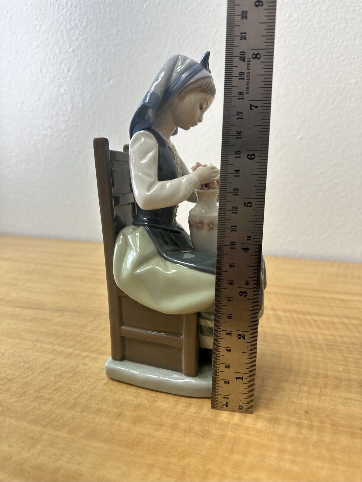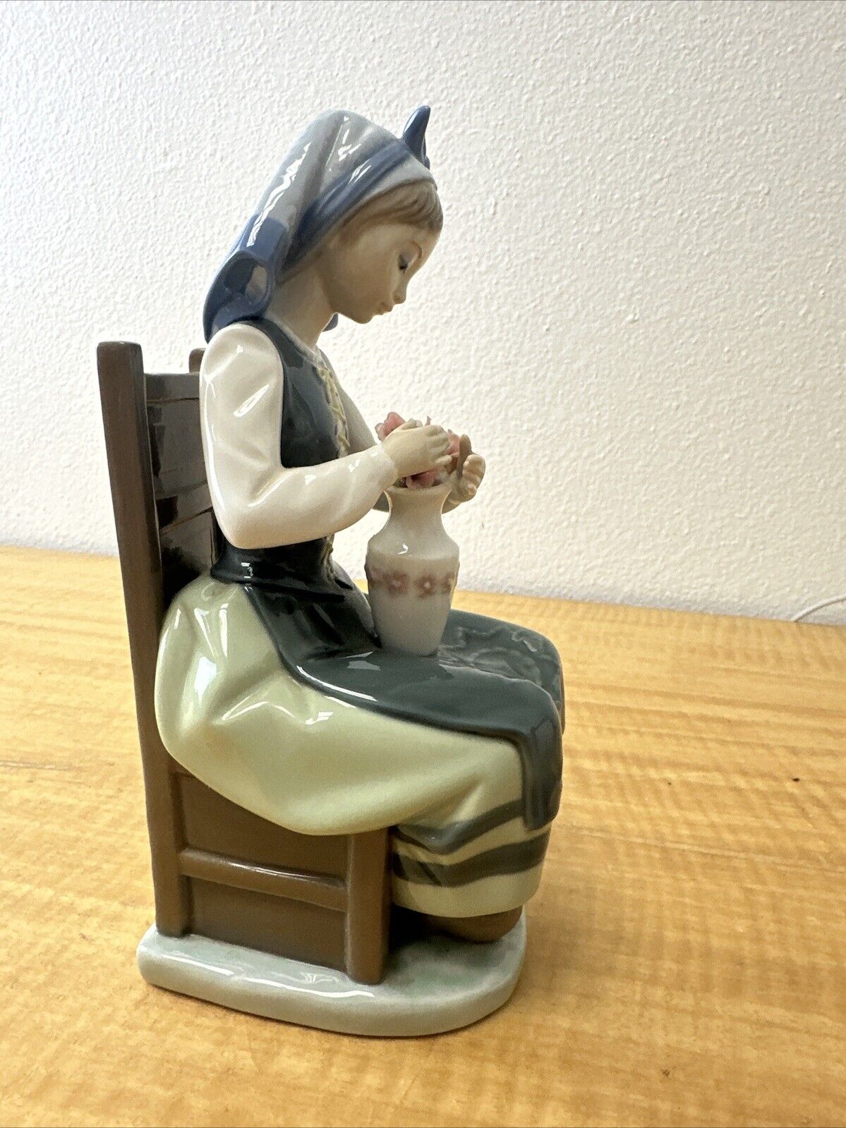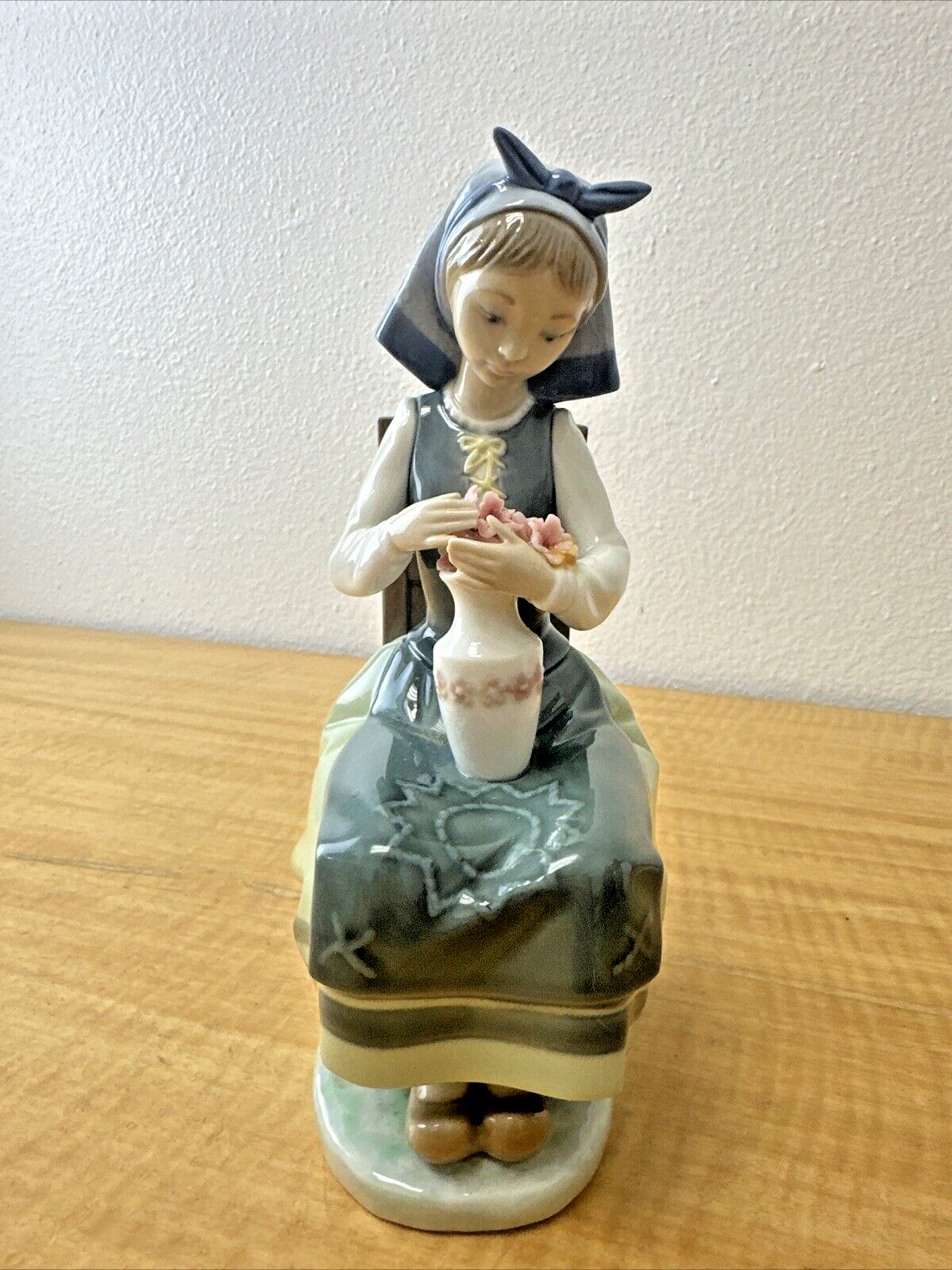 "Flower Harmony " Girl Hold Vase Vintage Figurine Porcelain By Lladro Spain 1983