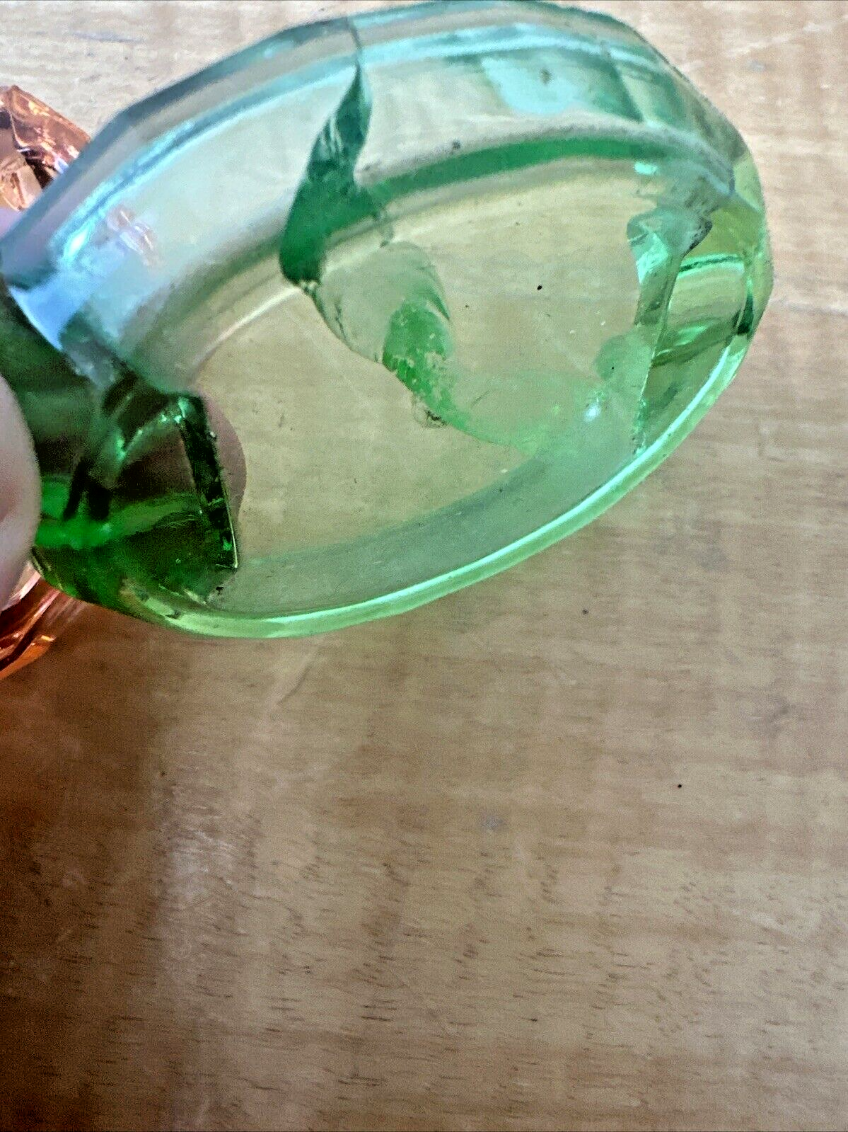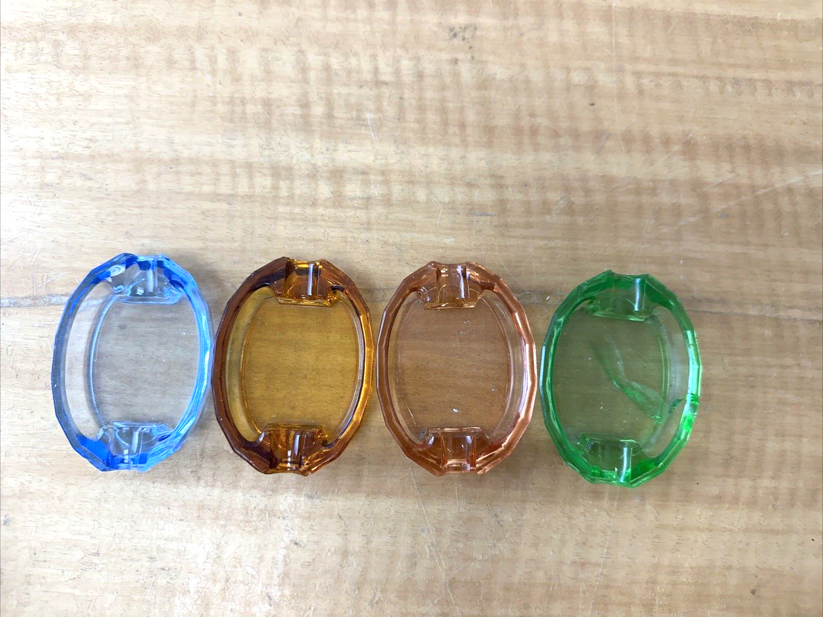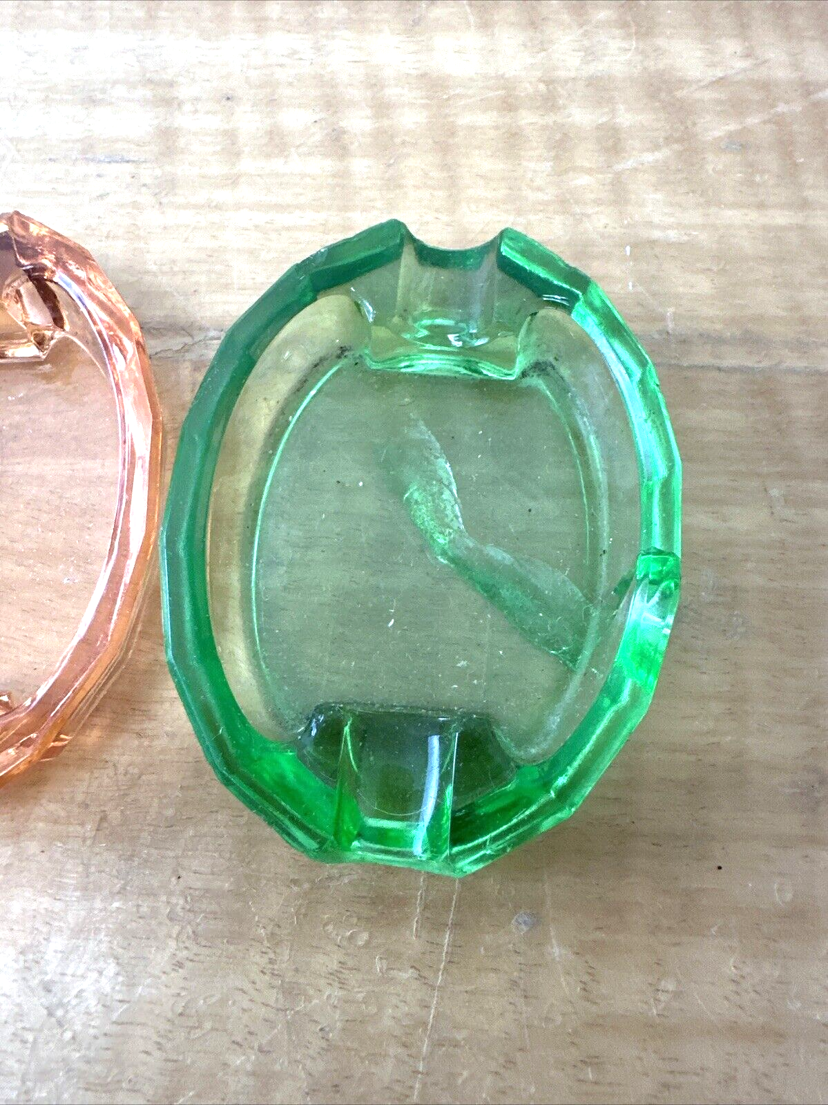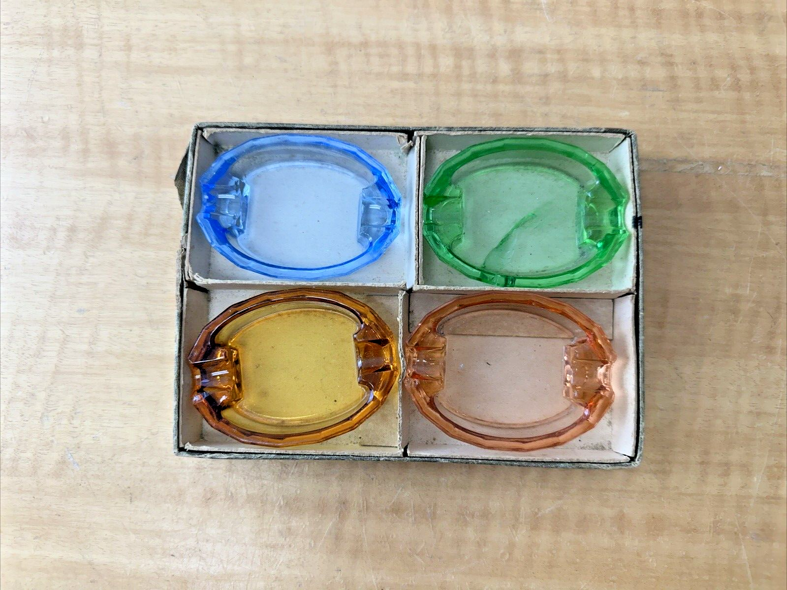 Atq Czechoslovakian Glass Ashtray Set of 4 Vaseline Green Pink Amber Cornflower