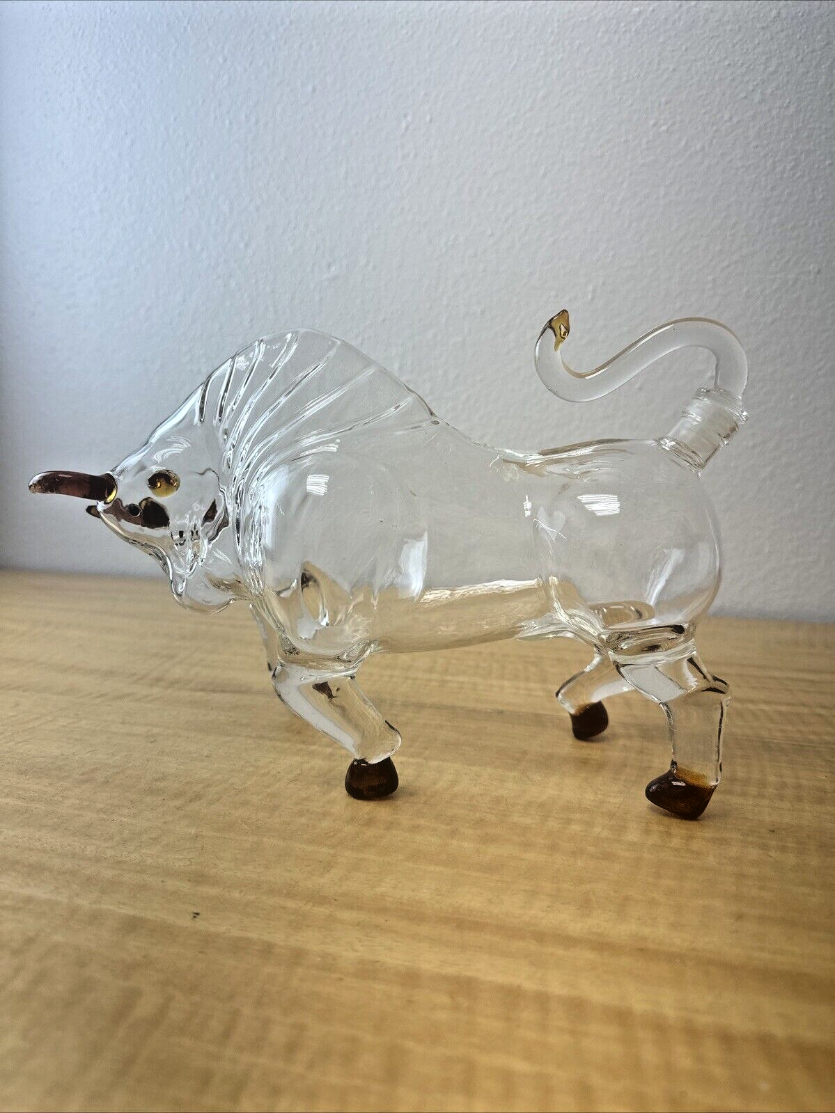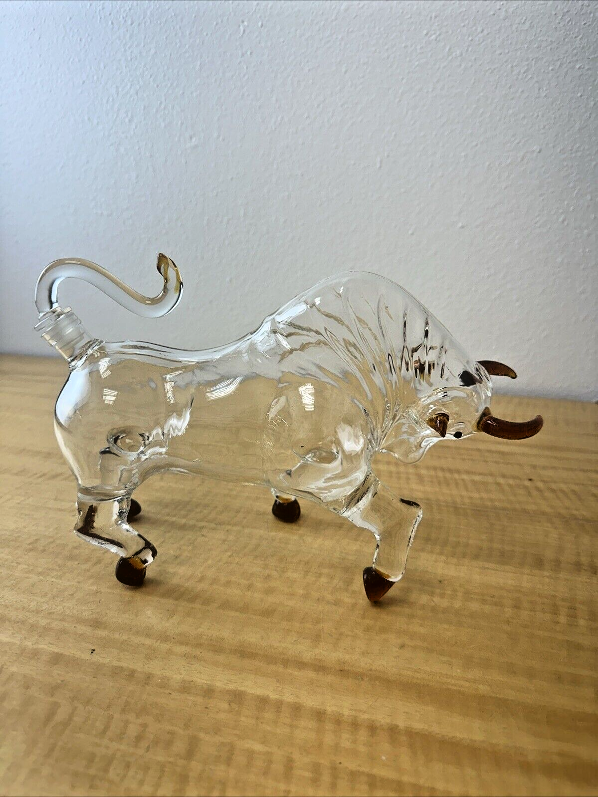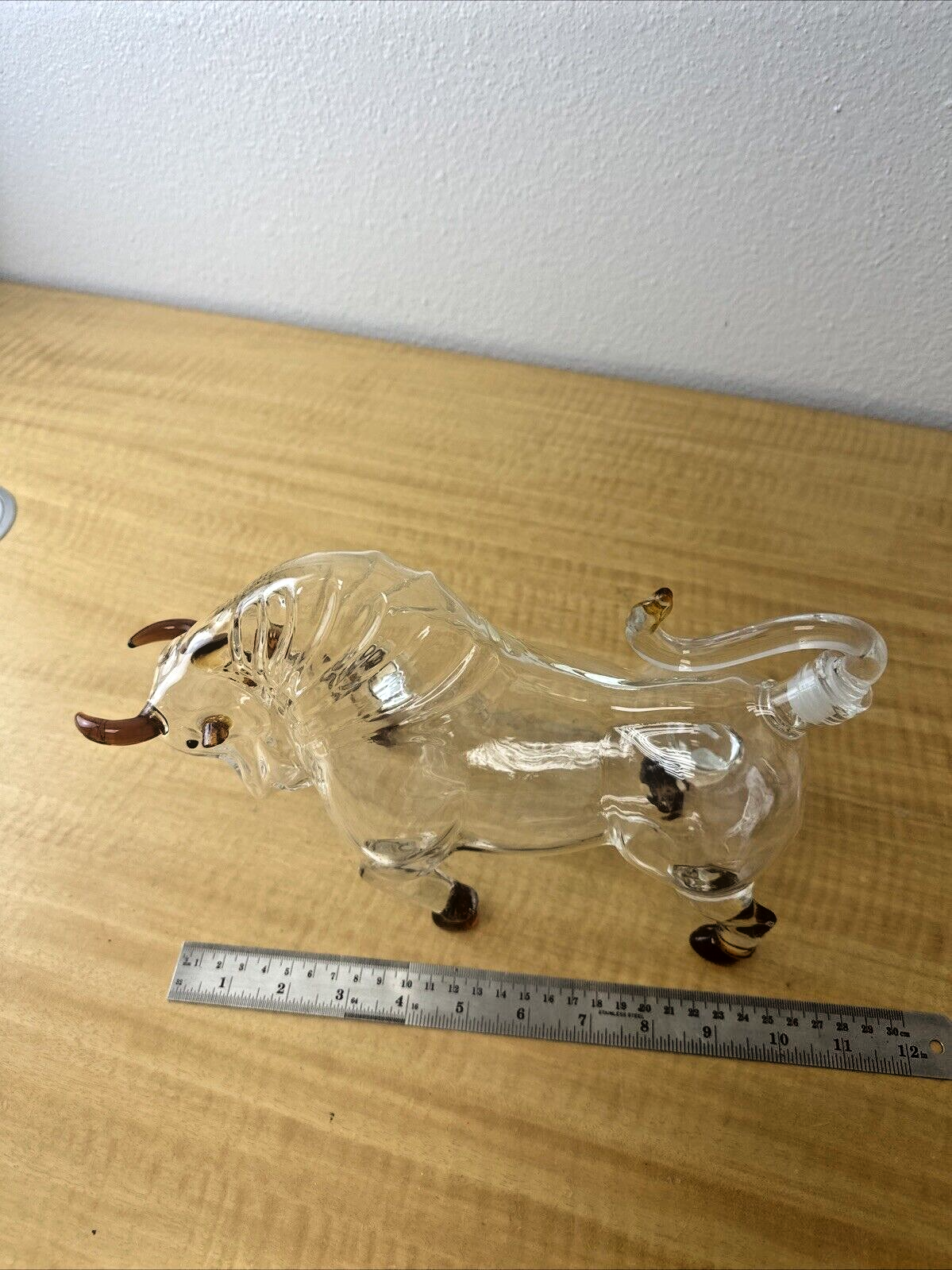 NIB FLAWLESS Art Crystal GODINGER STOCK MARKET BULL Glass DECANTER STOPPER