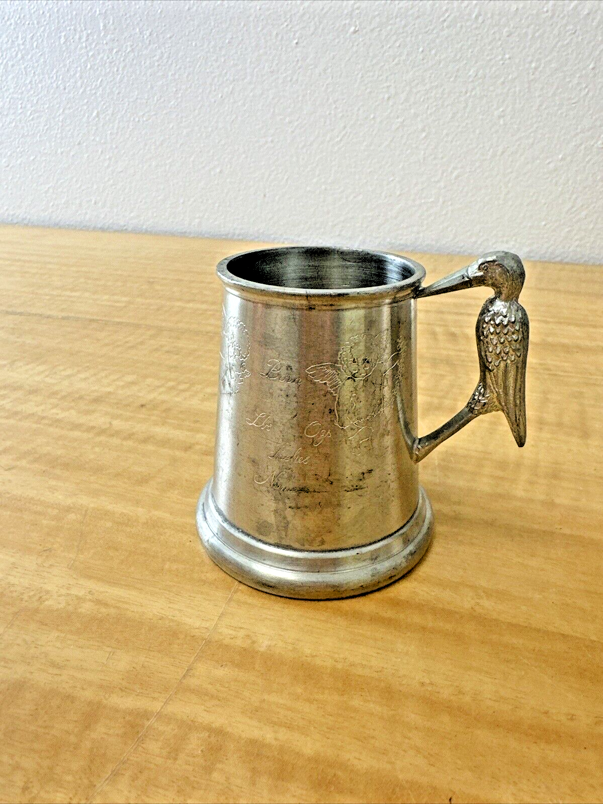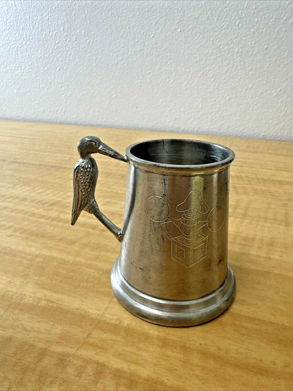 Stork Handle Baby Cup Vintage English Pewter; Engraveable