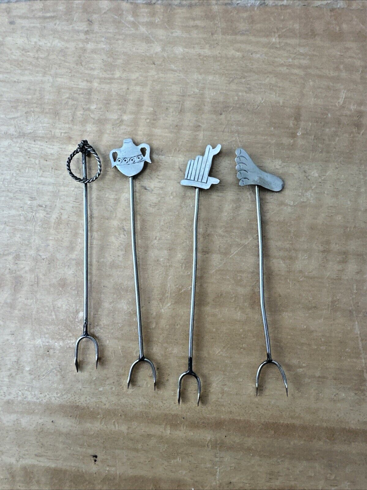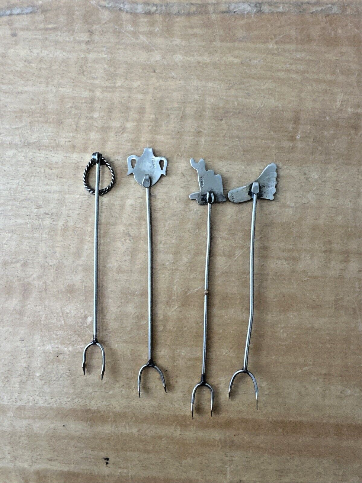Vintage Set of 4 Mexico Silver Cocktail Hors D'oeuvres Picks Forks