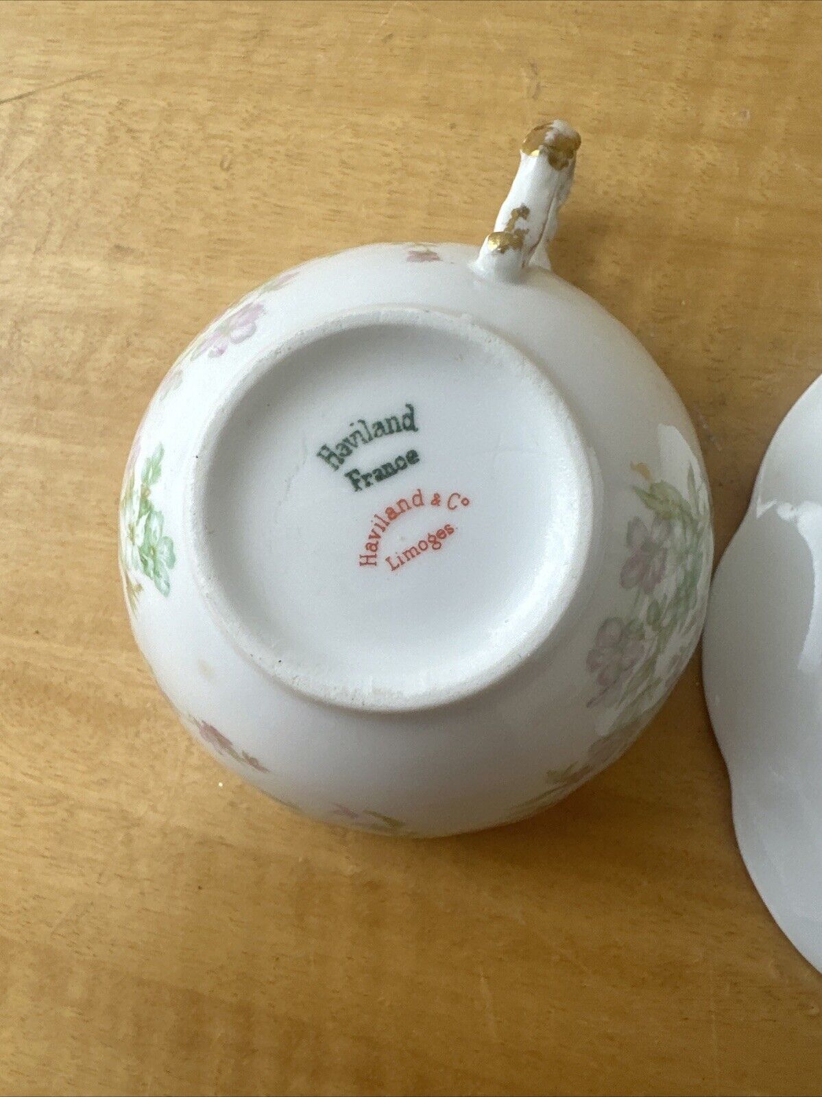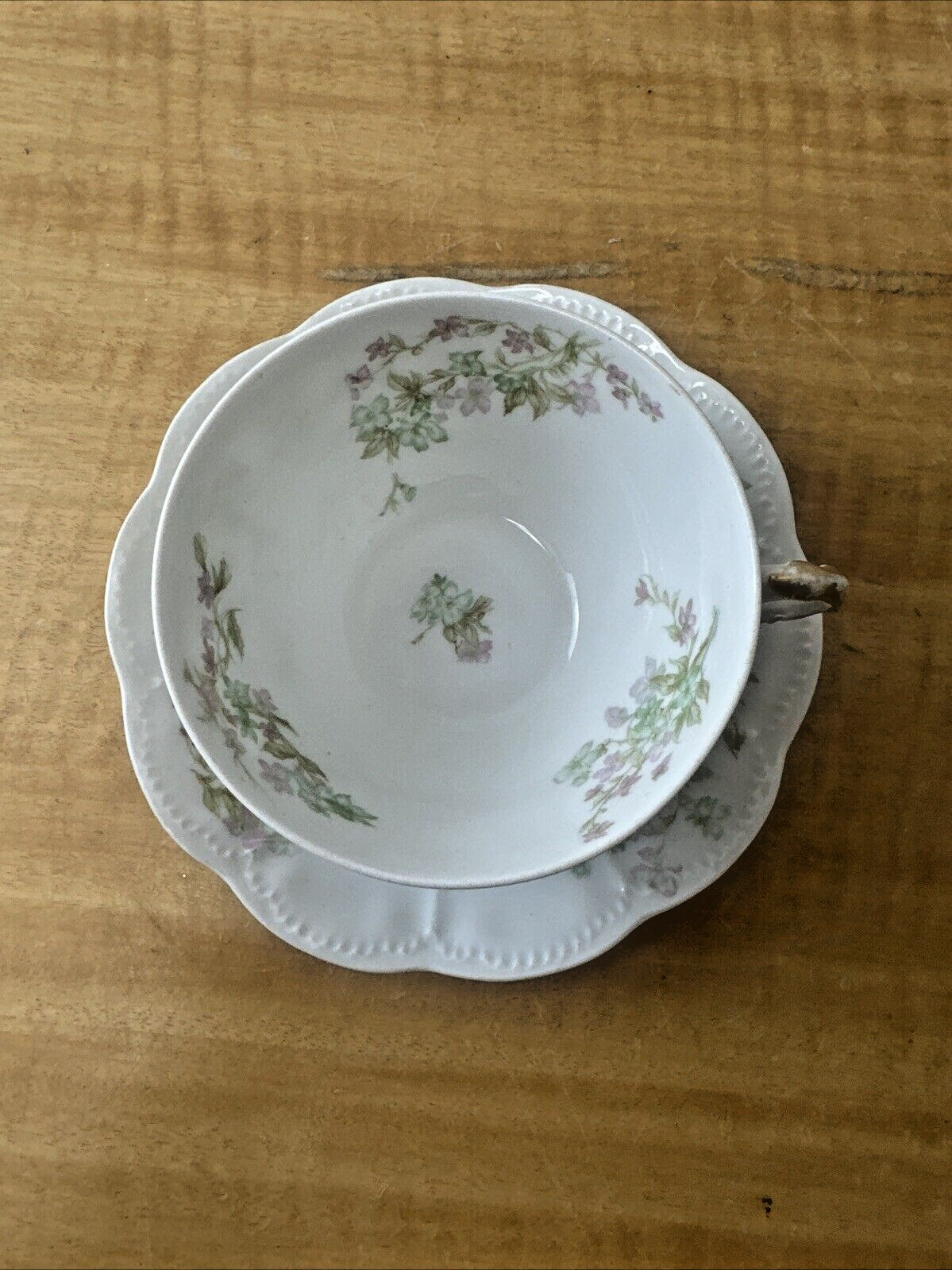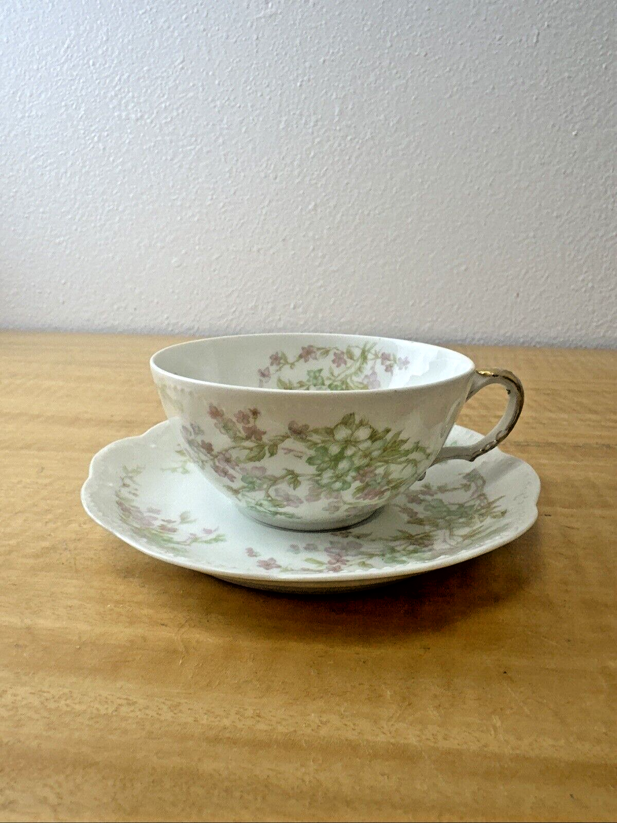 Haviland Limoges Cup & Saucer Schleiger Blue Pink Purple Flower 1893-1931