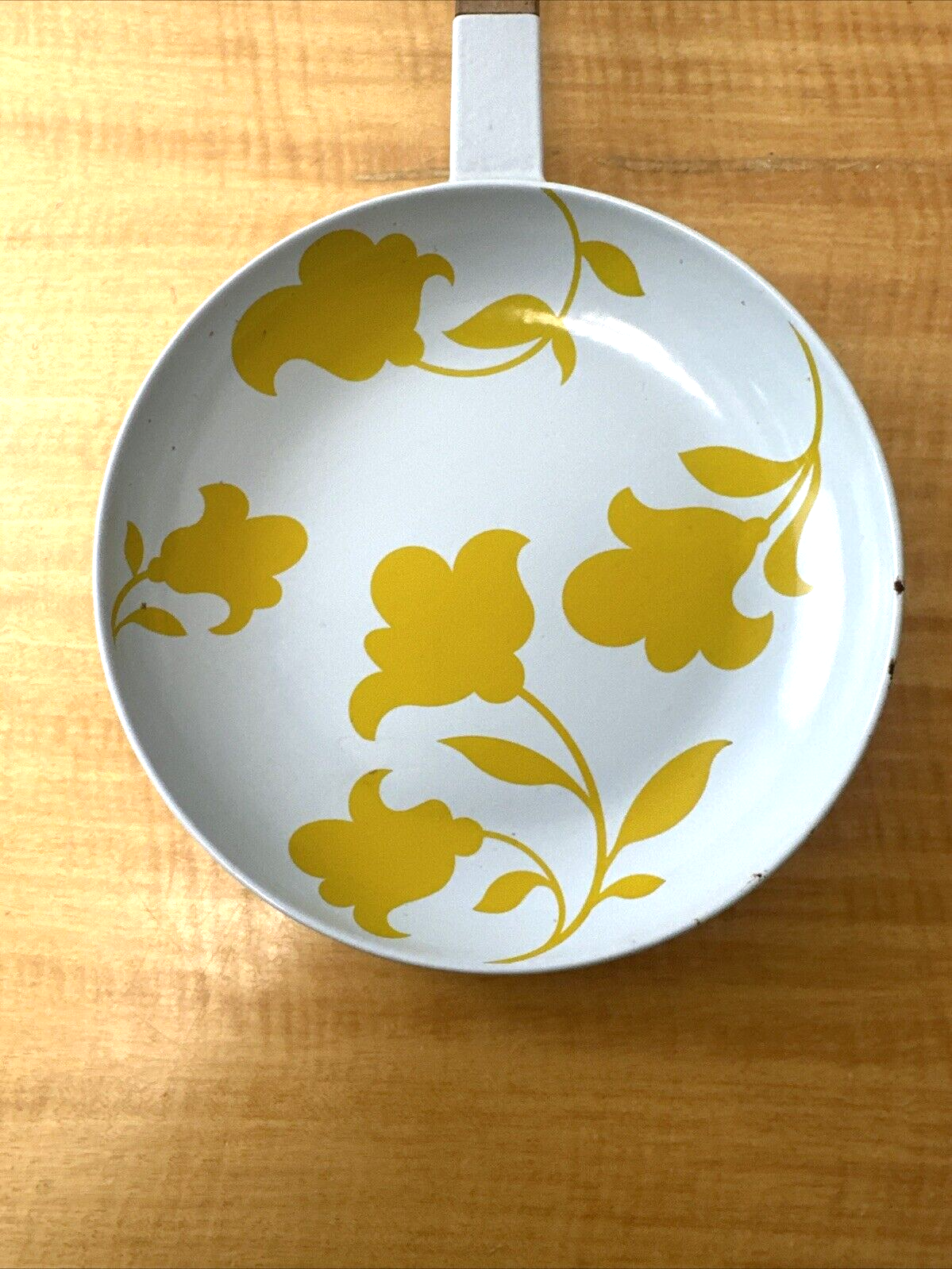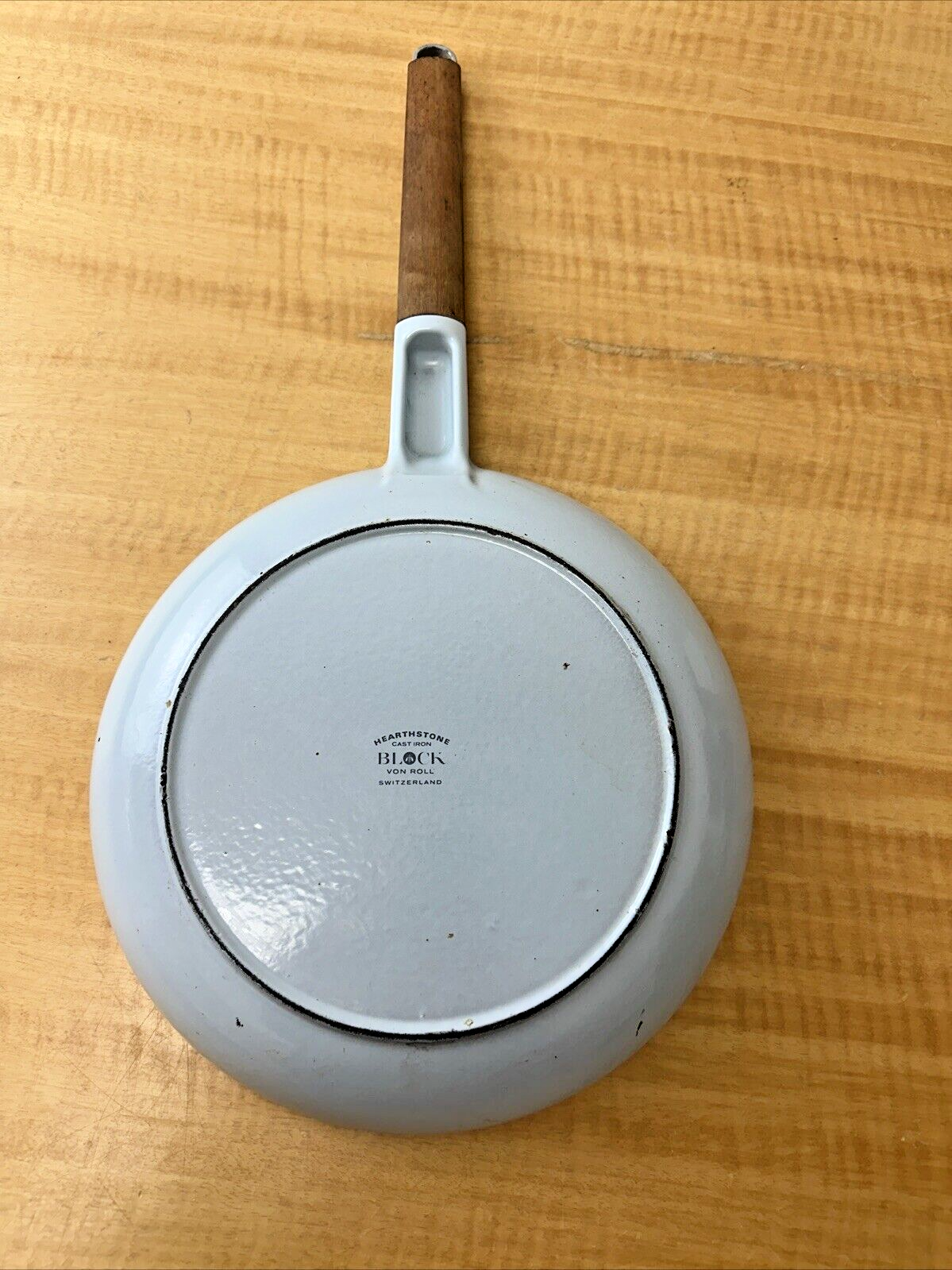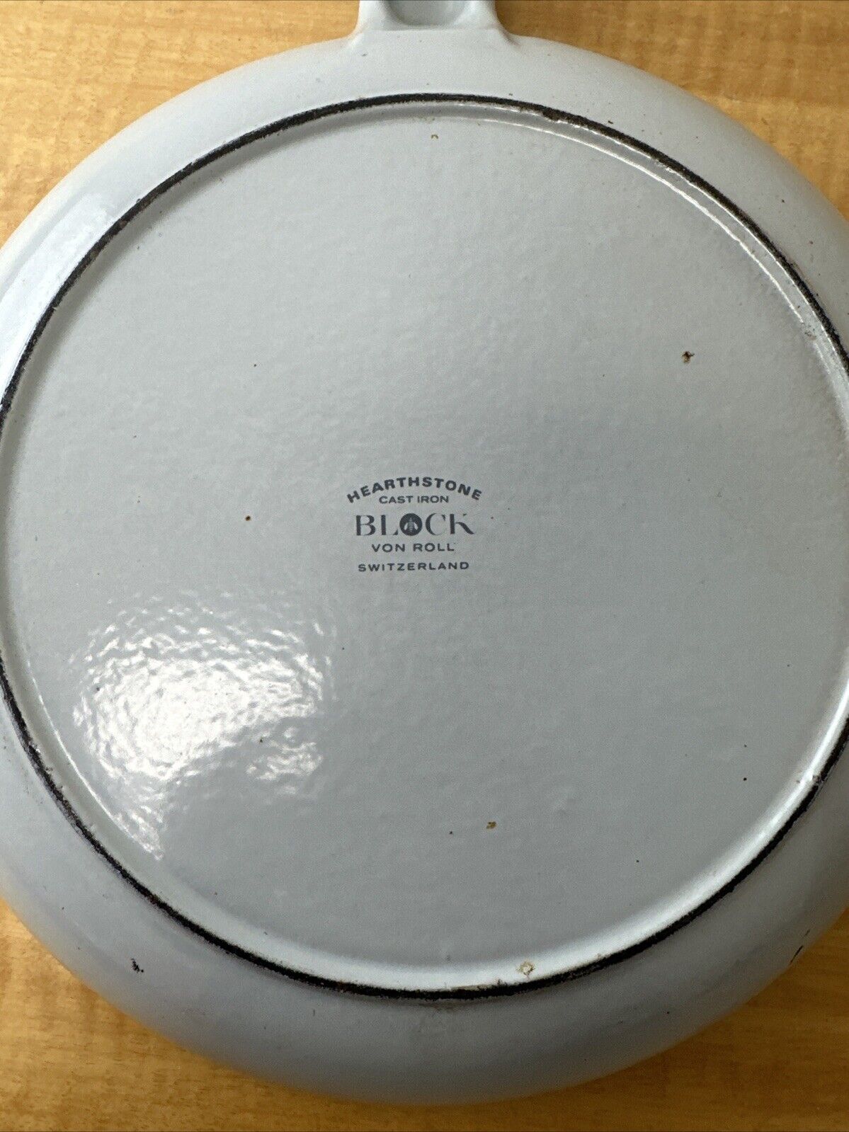 VINTAGE HEARTHSTONE BLOCK VON ROLL CAST IRON ENAMEL FRYING PAN MUSHROOMS