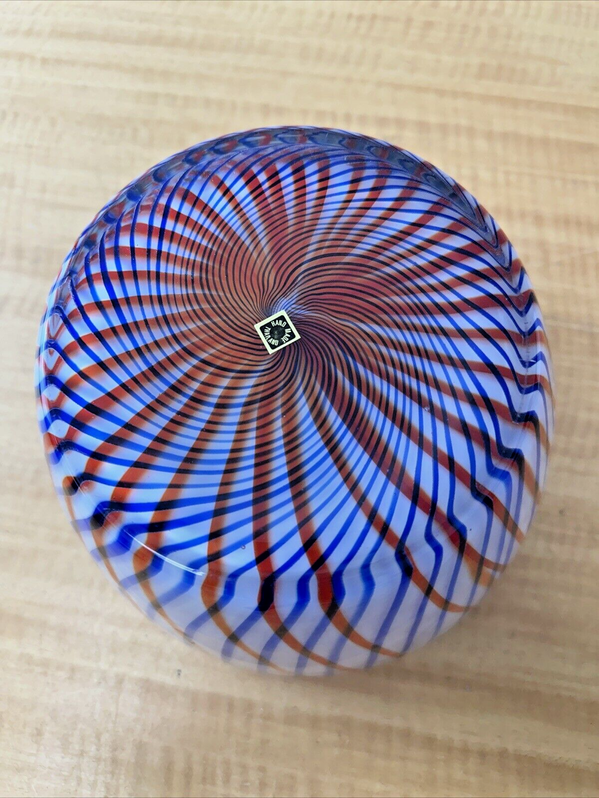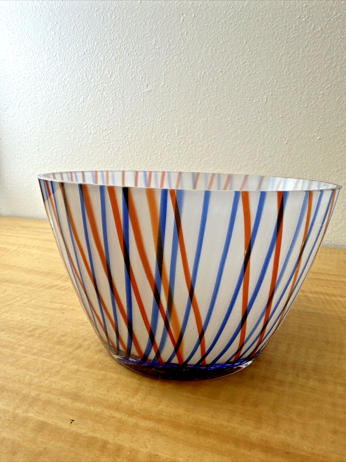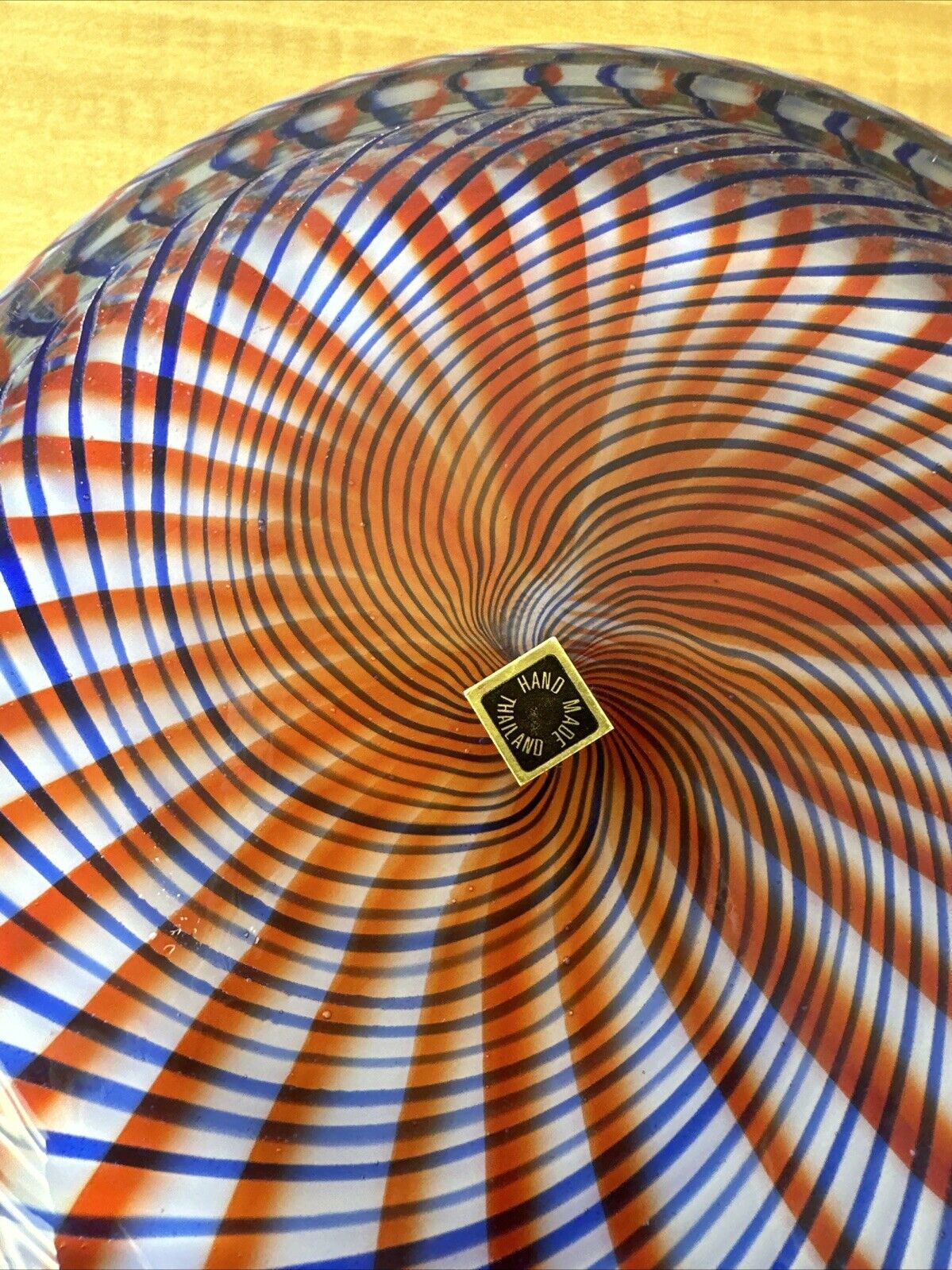 Murano Style Art Glass Bowl Orange & Blue Swirls - Handmade in Thailand