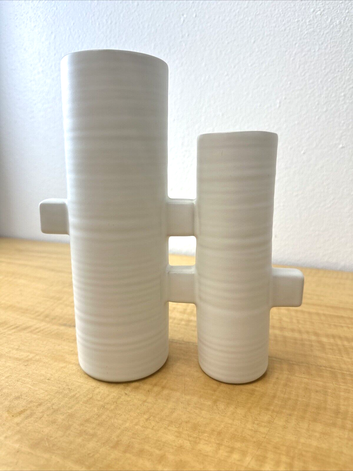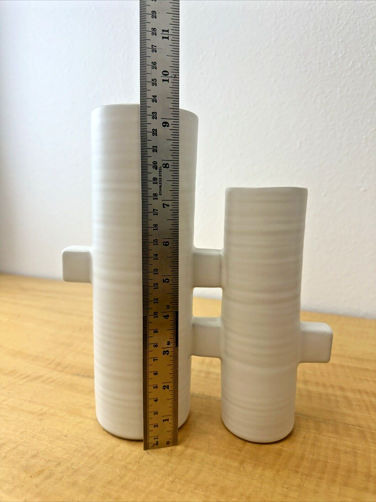 Vintage Modernist MCM Ikebana Japanese Double White Bamboo Vase 9.5" Pottery