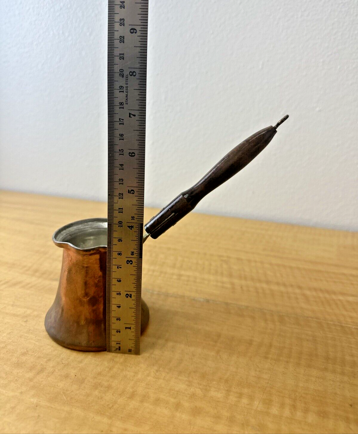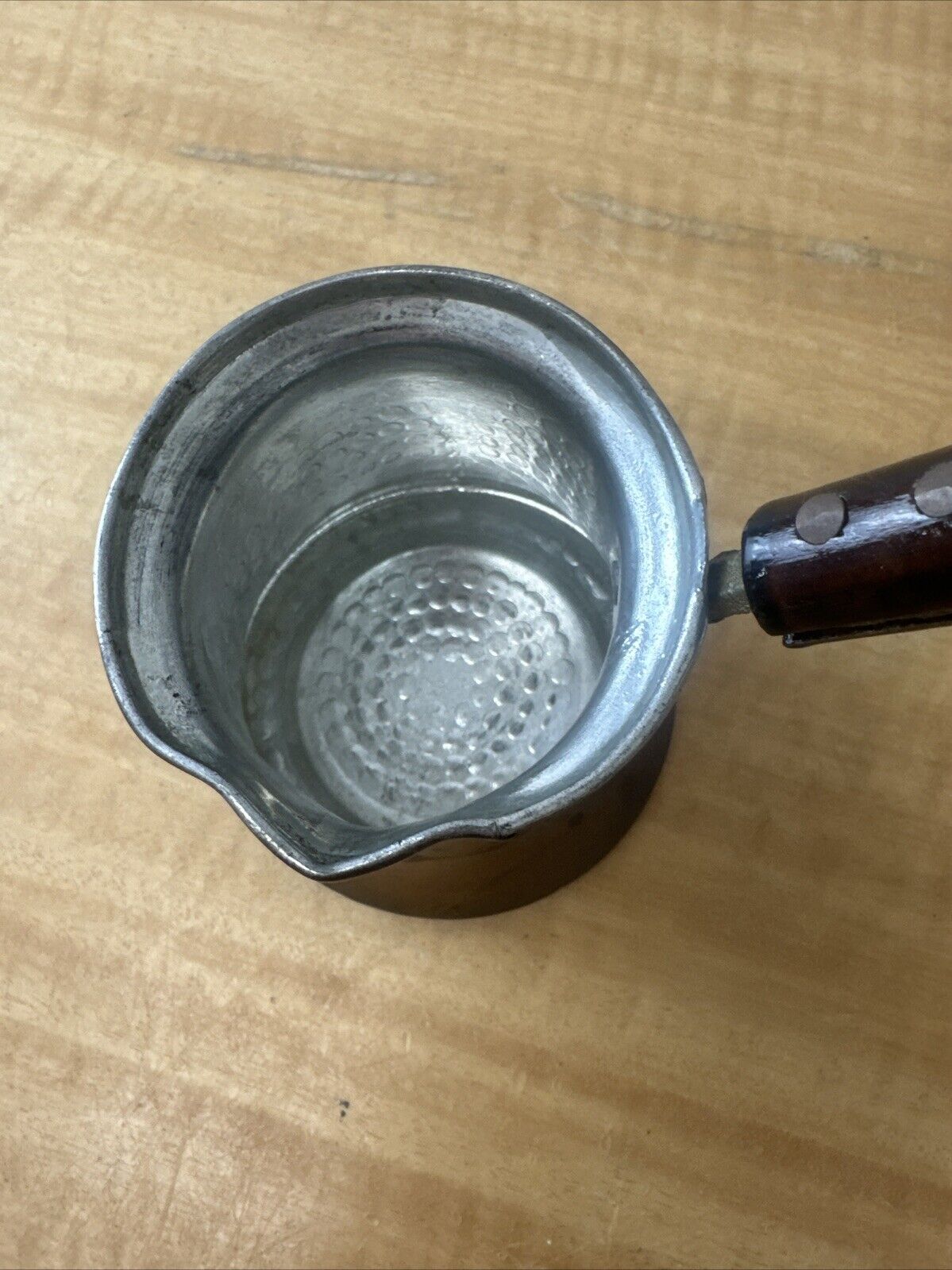 Turkish Coffee Pot Mister Copper Hammered + Wooden Handle 10 Fl Oz