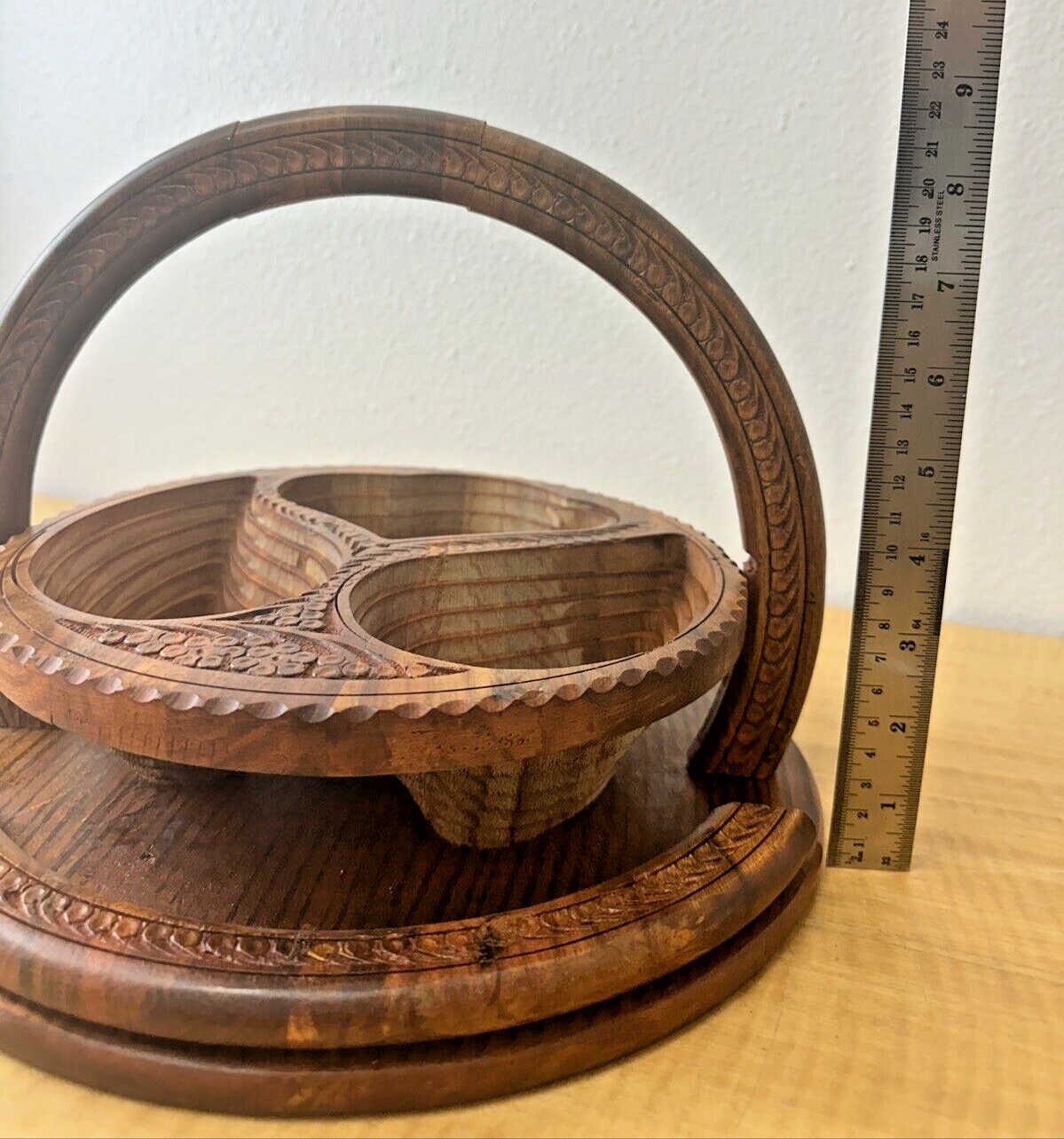 Vintage Solid Wood Basket Collapsible Carved Bowl Nuts Dry Fruits Candy Dish