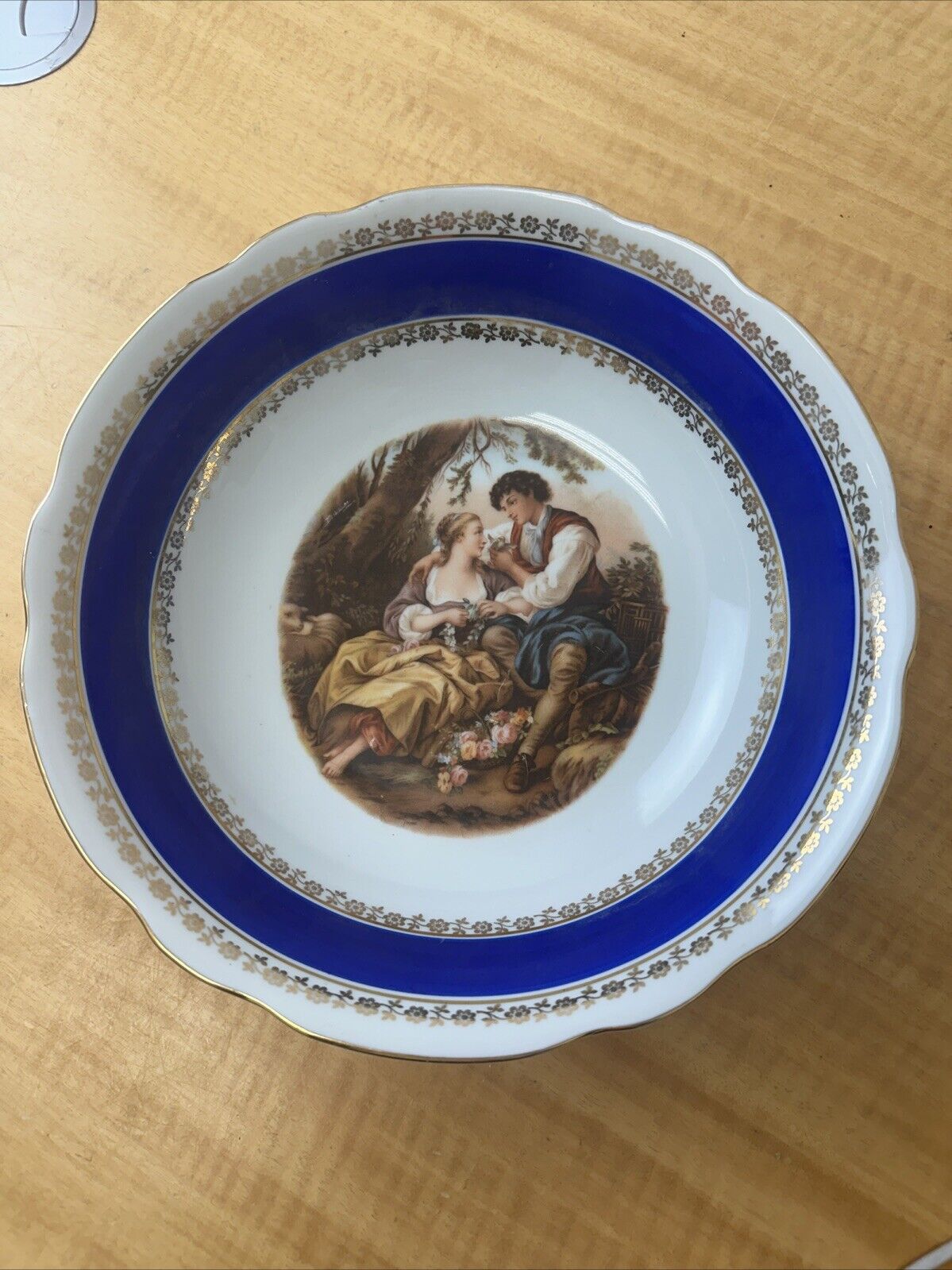 Carl Tielsch Courting Couple Cobalt Gold 10 Serving Bowl - Made In Germany