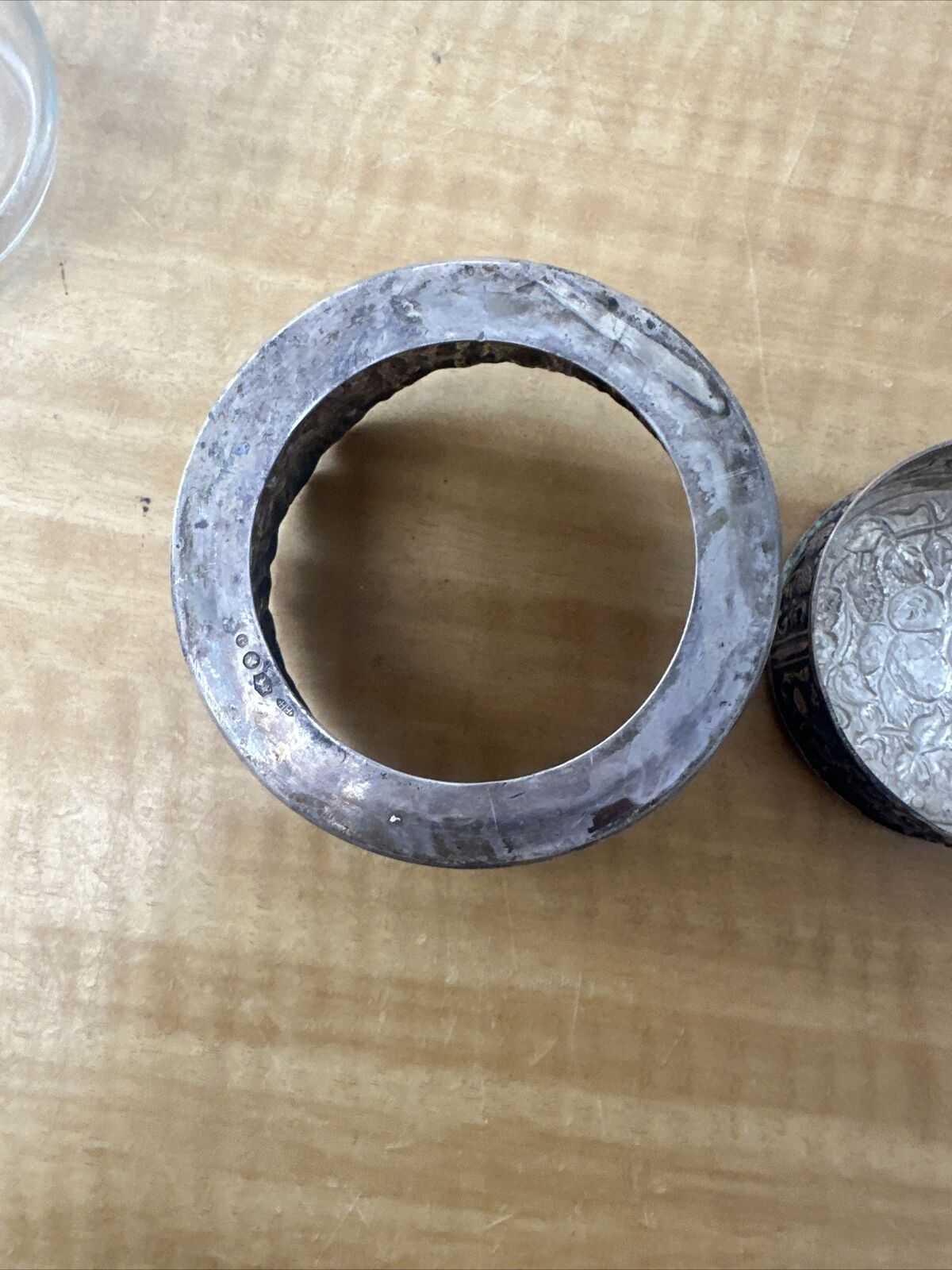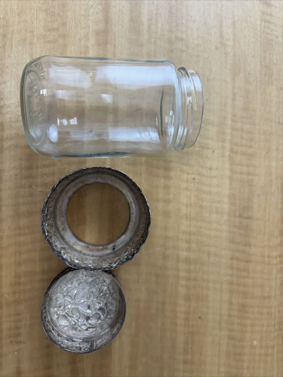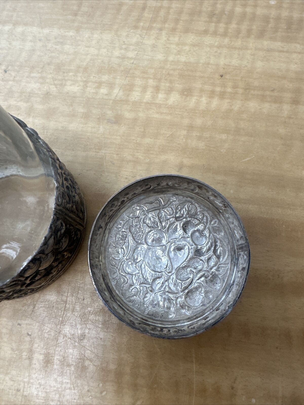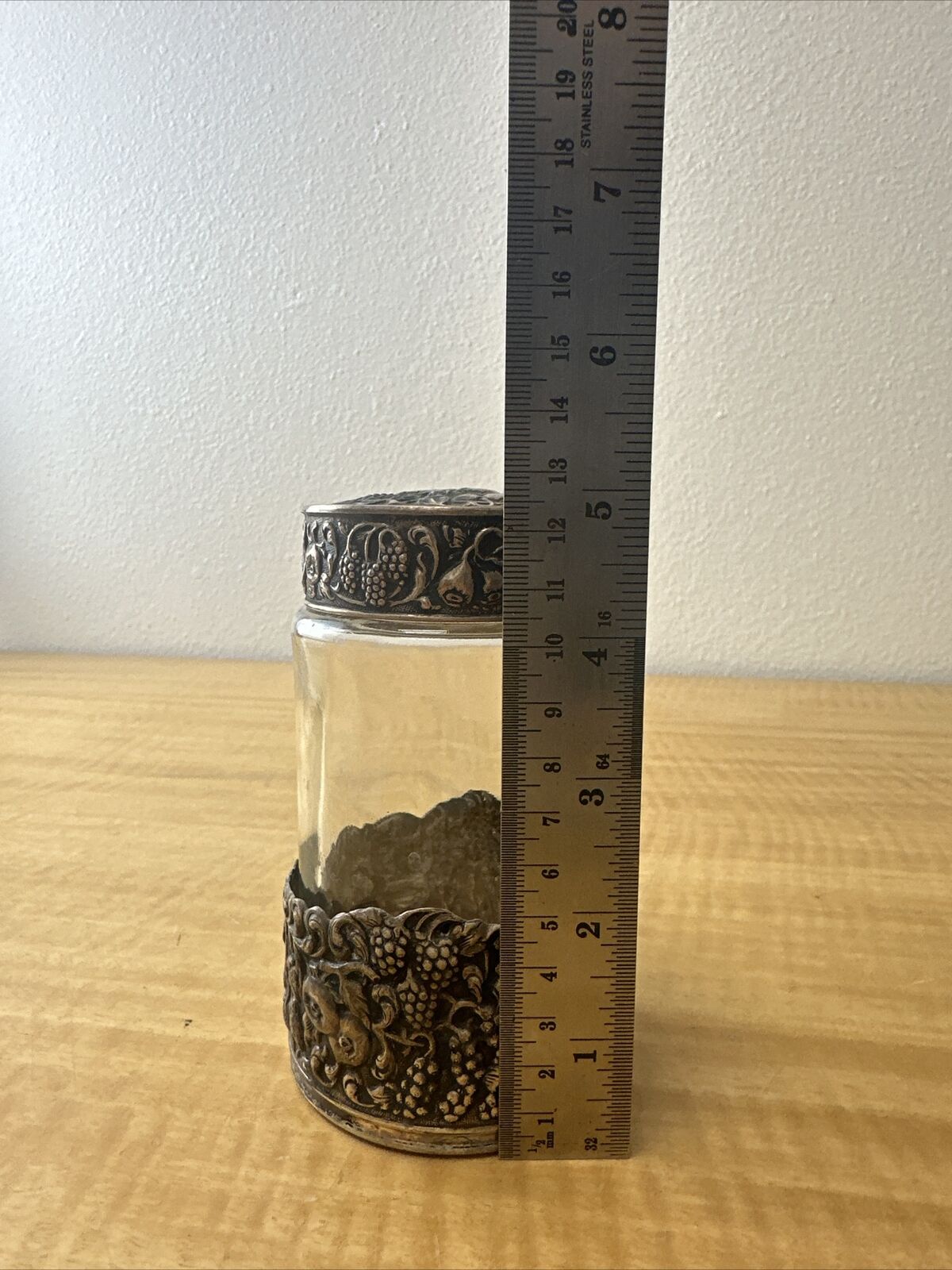 ANTIQUE DUTCH HOLLAND SILVER REPOUSSE GLASS JAM JAR, FRUIT .