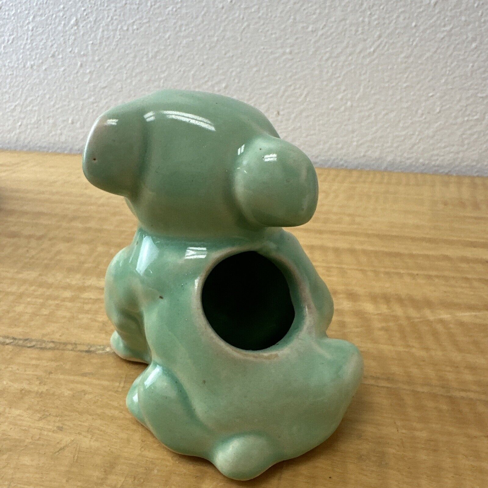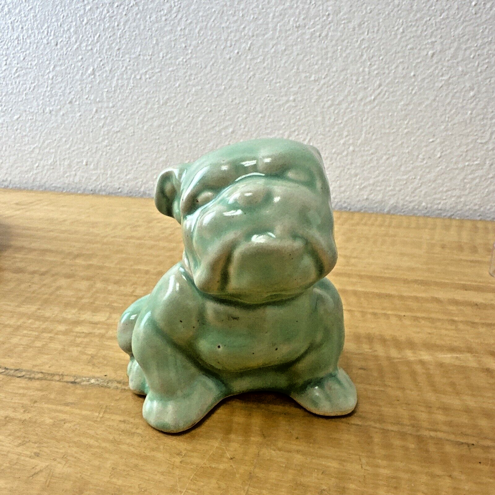 Vintage MORTON POTTERY Bulldog Planter Teal Green 4 in.