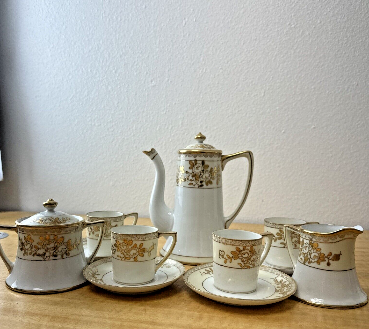 Antique Rare Nippon Handpainted Gold Decoration Coffee Set