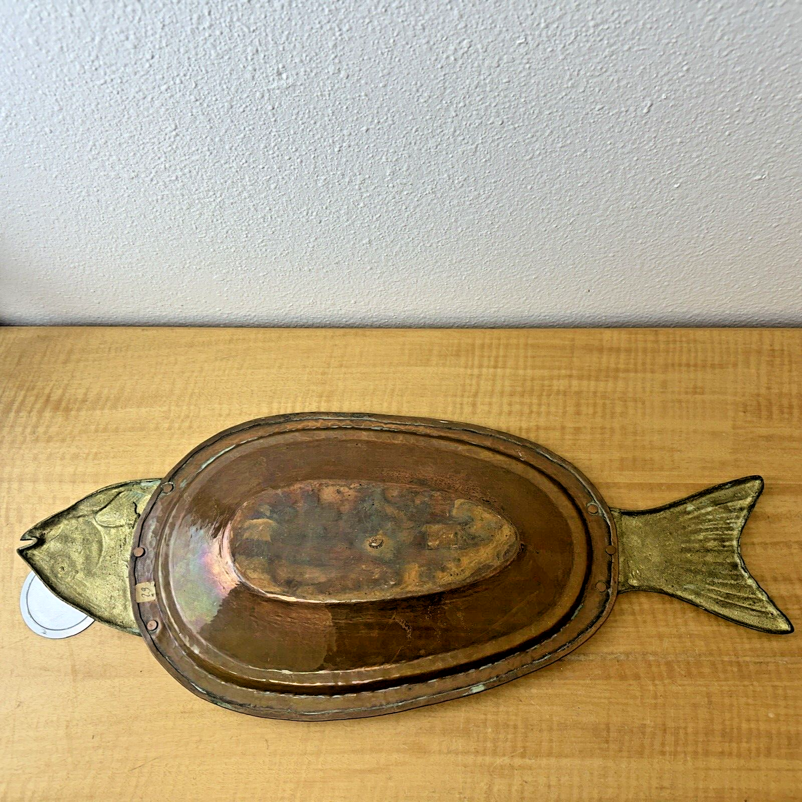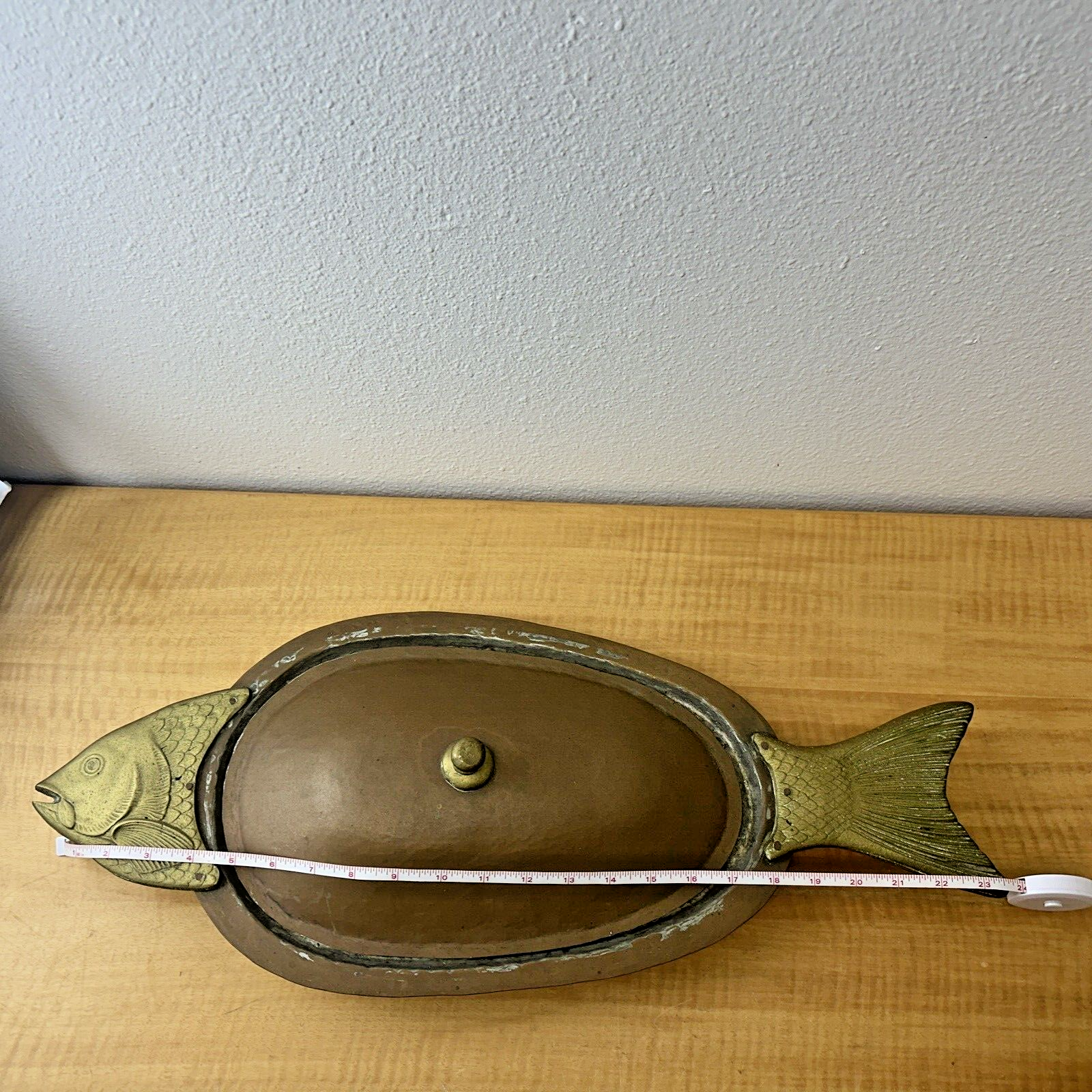 Fish Shape Copper Serving Platter w/ Lid and Brass Vintage Kitchen Dinning Decor