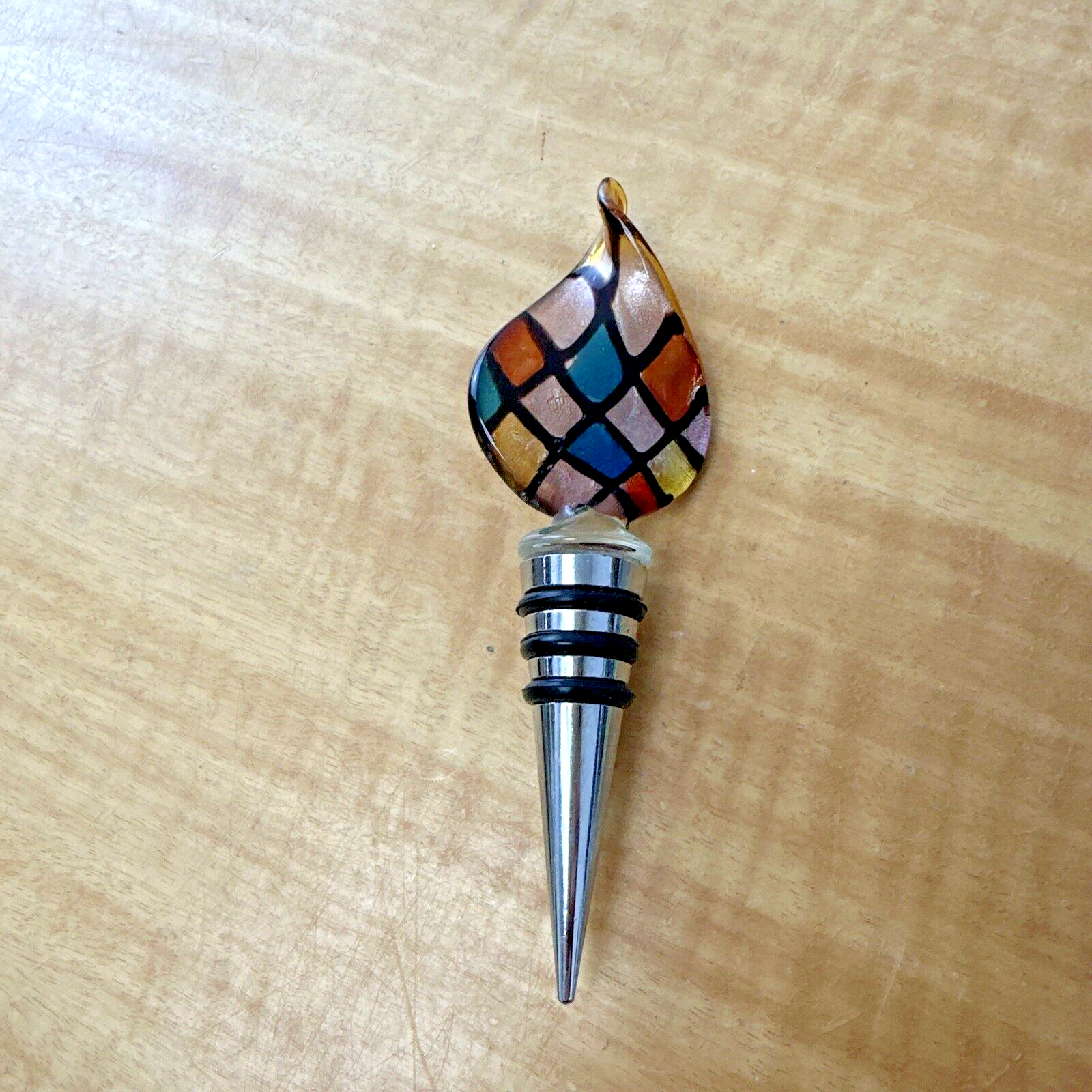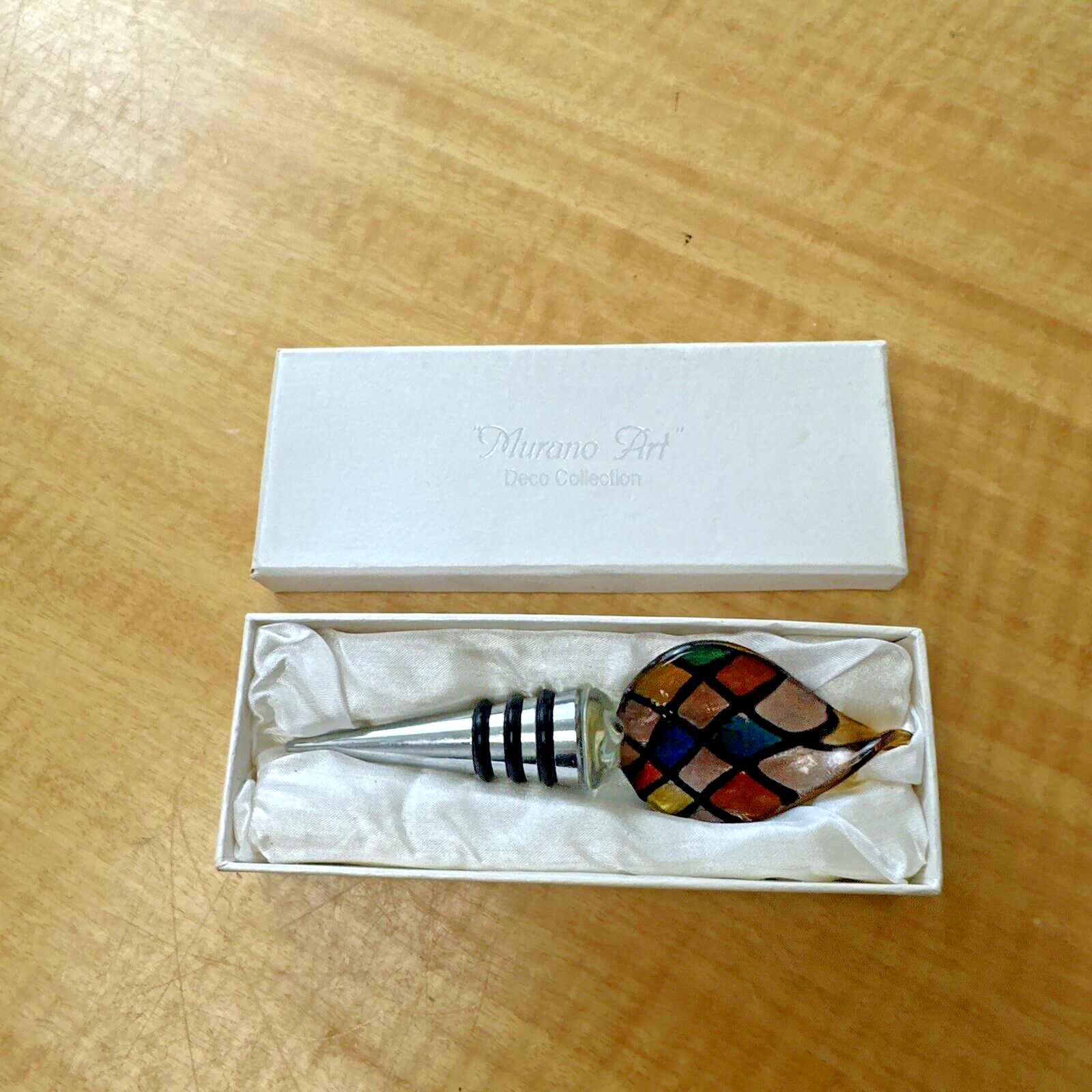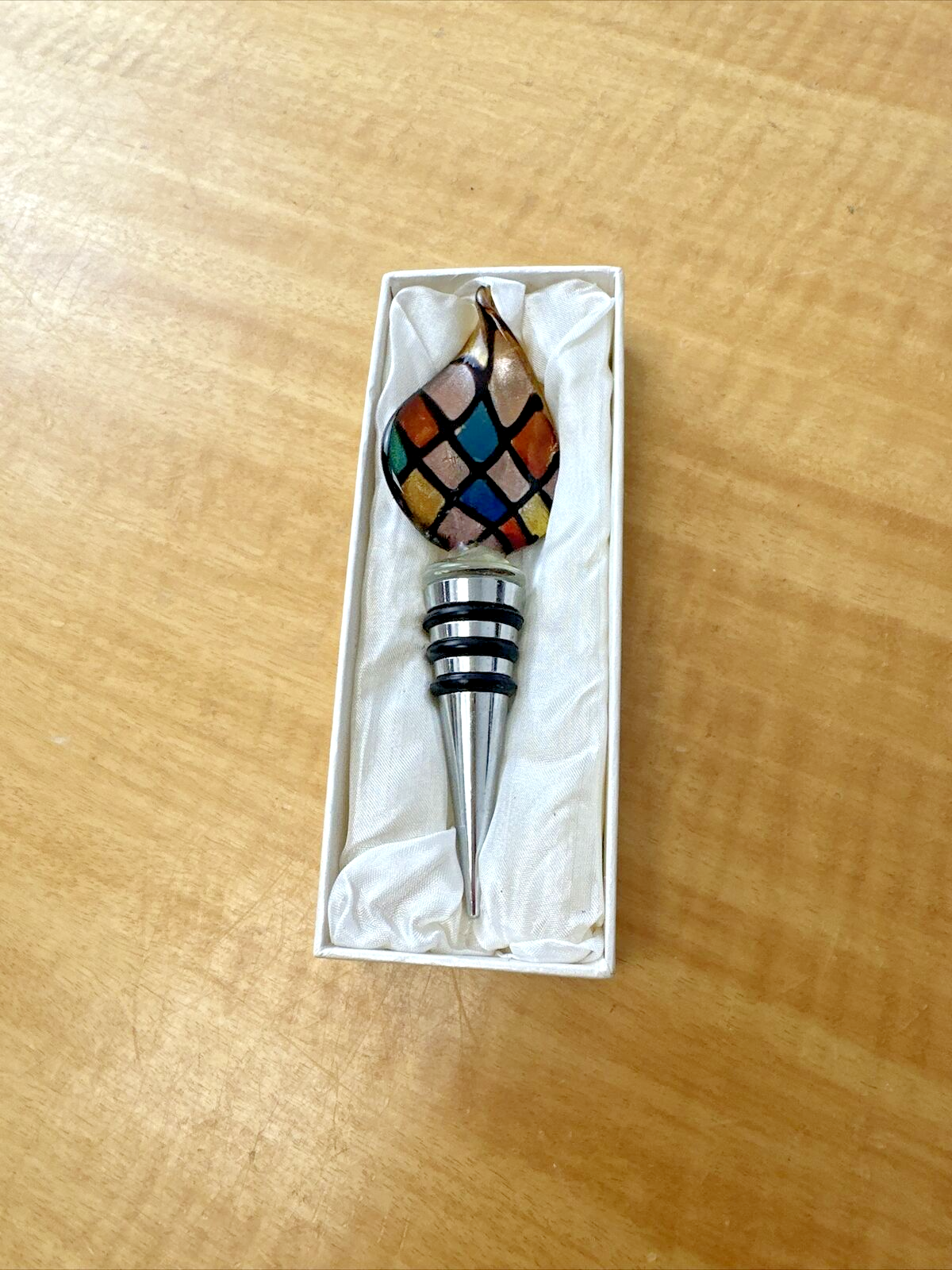 Vintage Murano Glass Wine Bottle Stopper Multicolor