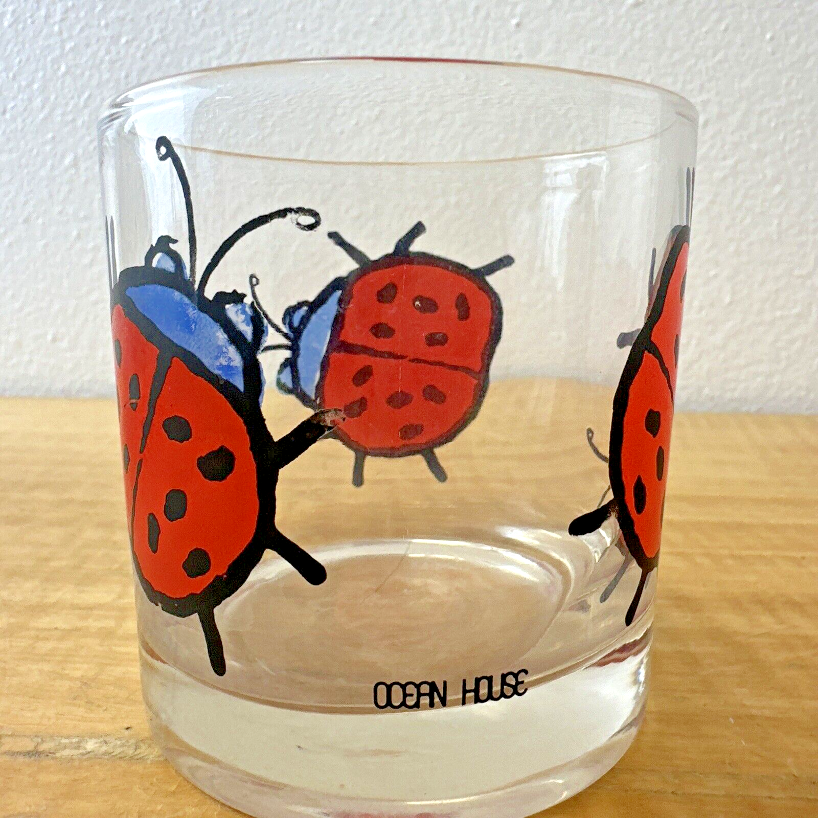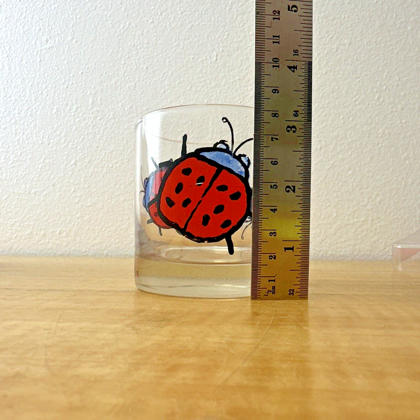 Vintage Red Lady Bug Garden Whiskey Glass 3.5"