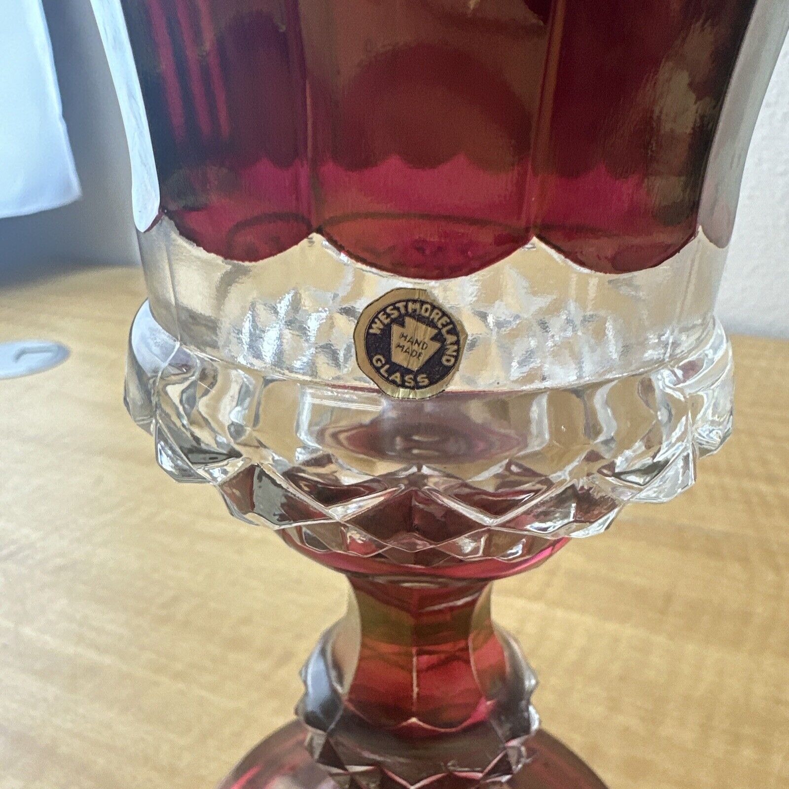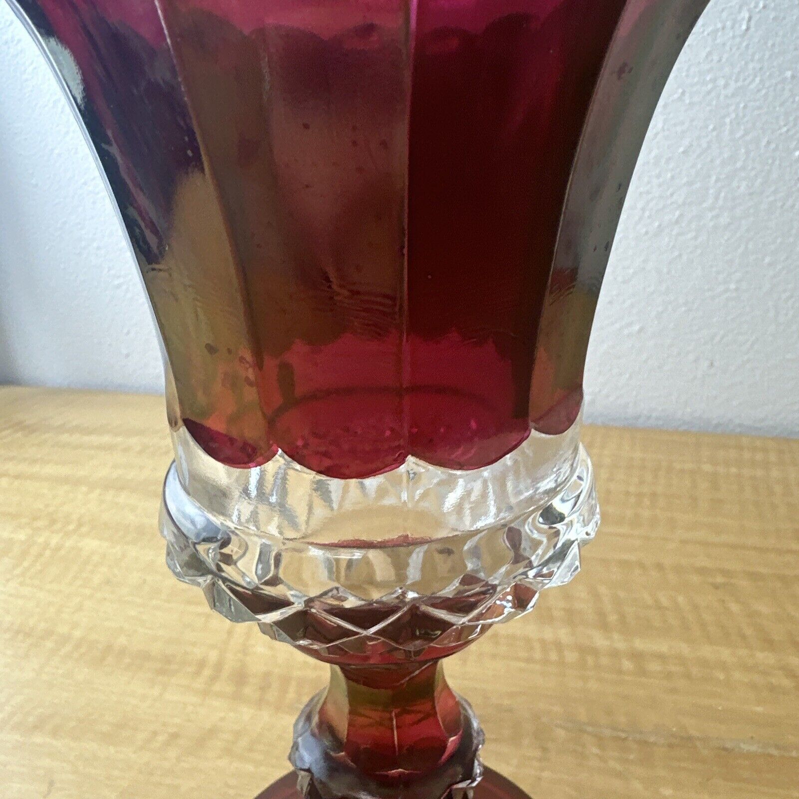 EAPG~RUBY FLASHED AND CLEAR DIAMOND GOBLET SHAPED VASE