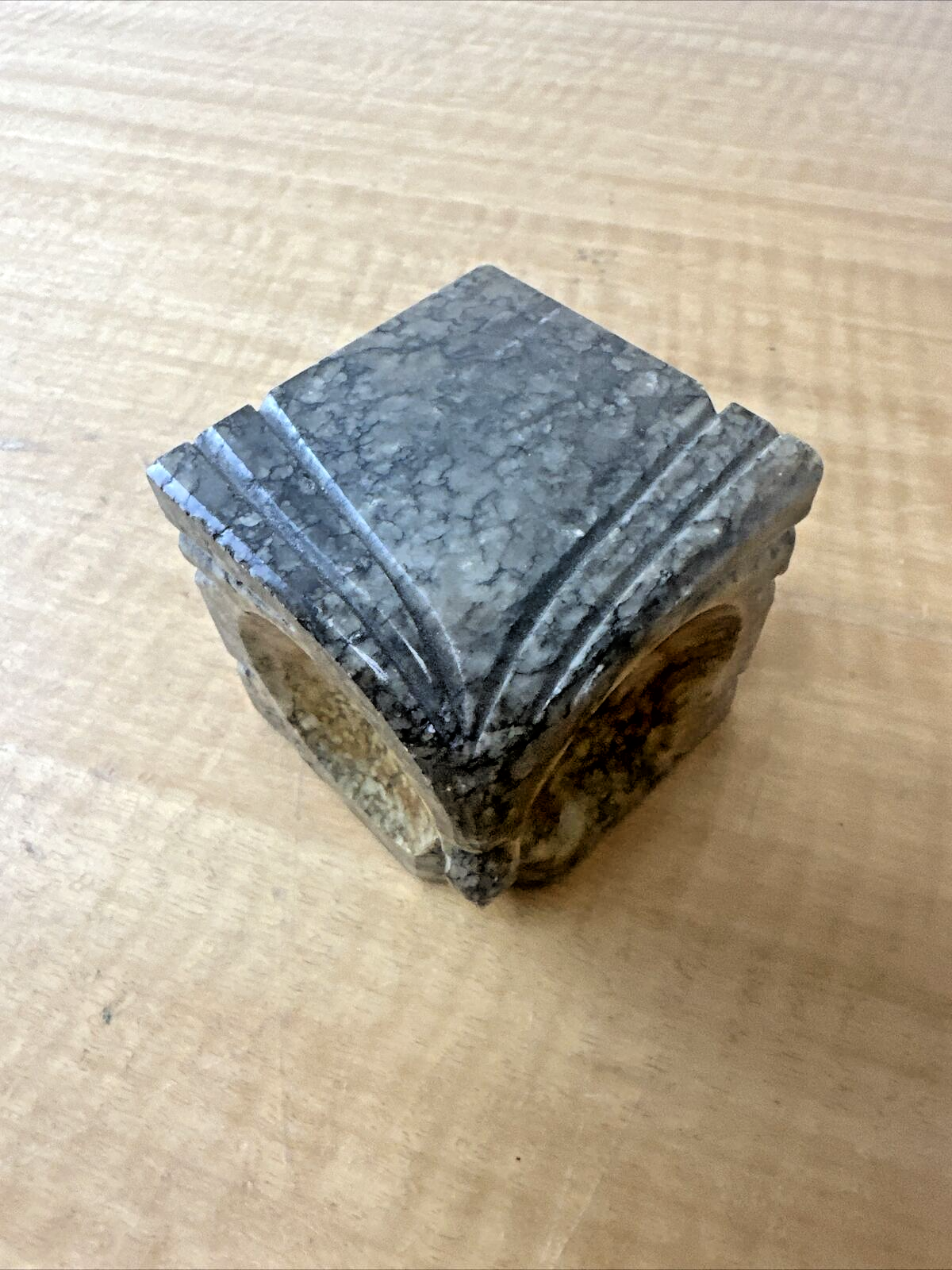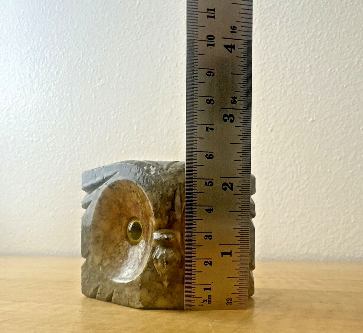 Vintage Hand Carved Italian Alabaster "Owl" Paperweight w/ Glass Eyes!! 2.5"