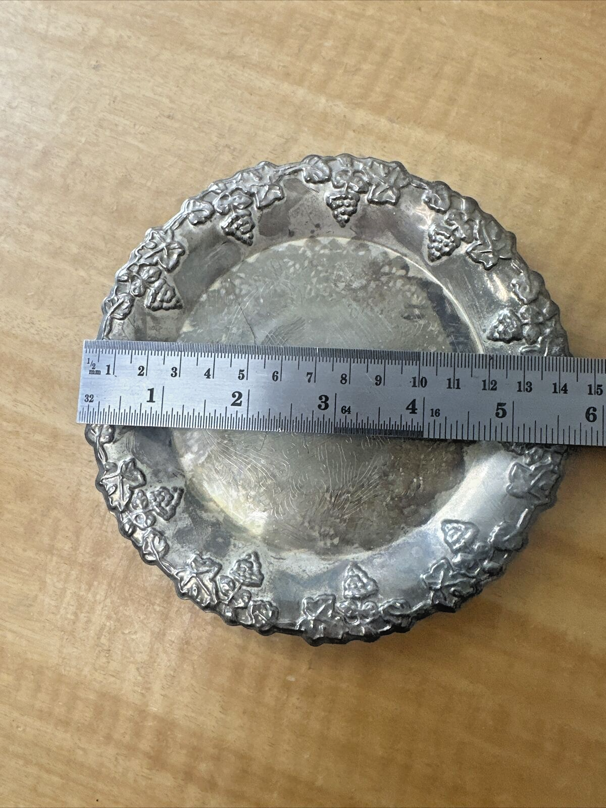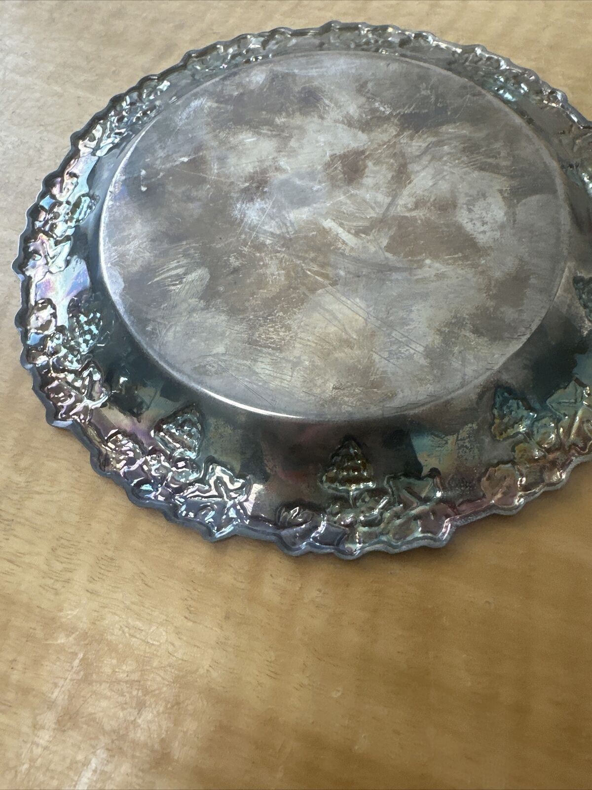 VTG Silver Plated ETCHED Grape LEAF Vine WINE Bottle HOLDER Coaster HONG KONG
