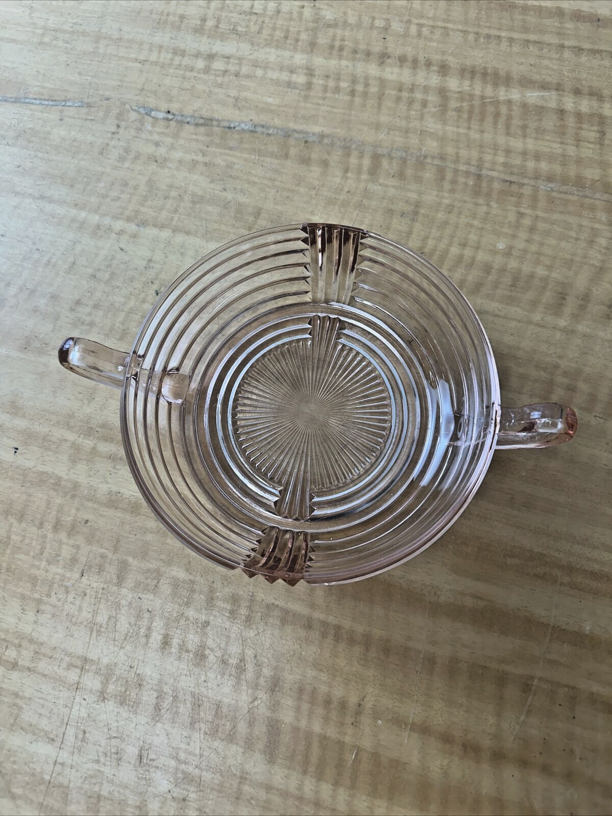 Anchor Hocking Manhattan Pink Depression Glass Ribbed Art Deco Handled Dish