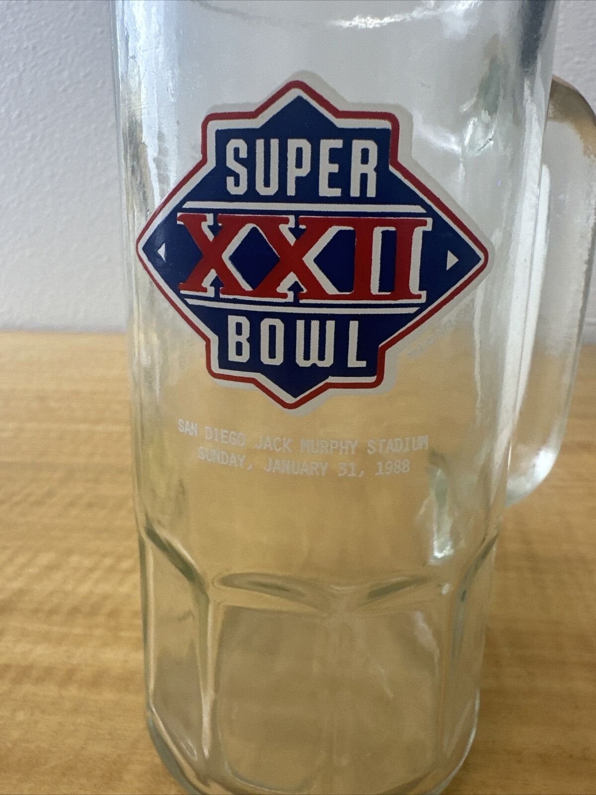 NFL Super Bowl XXII (22) Glass Beer Mug Tankard Football Fisher Nut Promo 1988