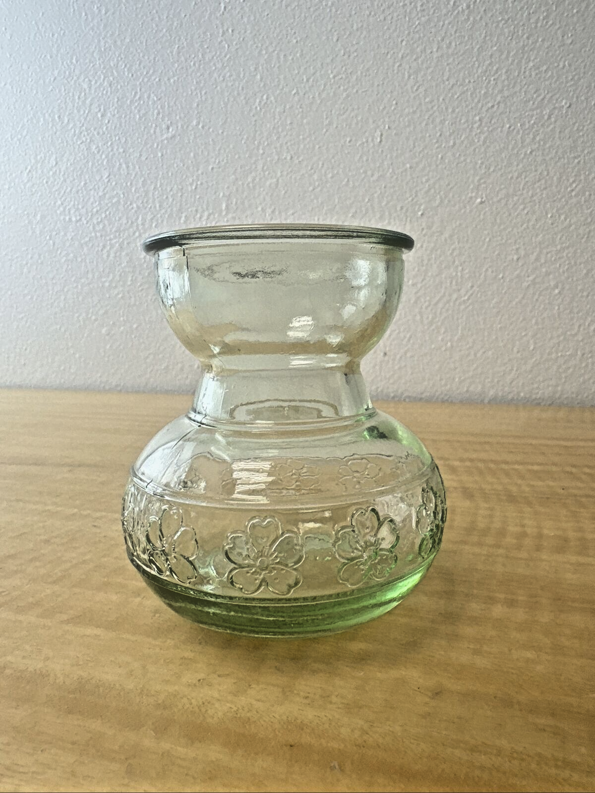 Glass Bulb Forcing Vase With Embossed Flower Motif - Tulip, Hyacinth, Paperwhite