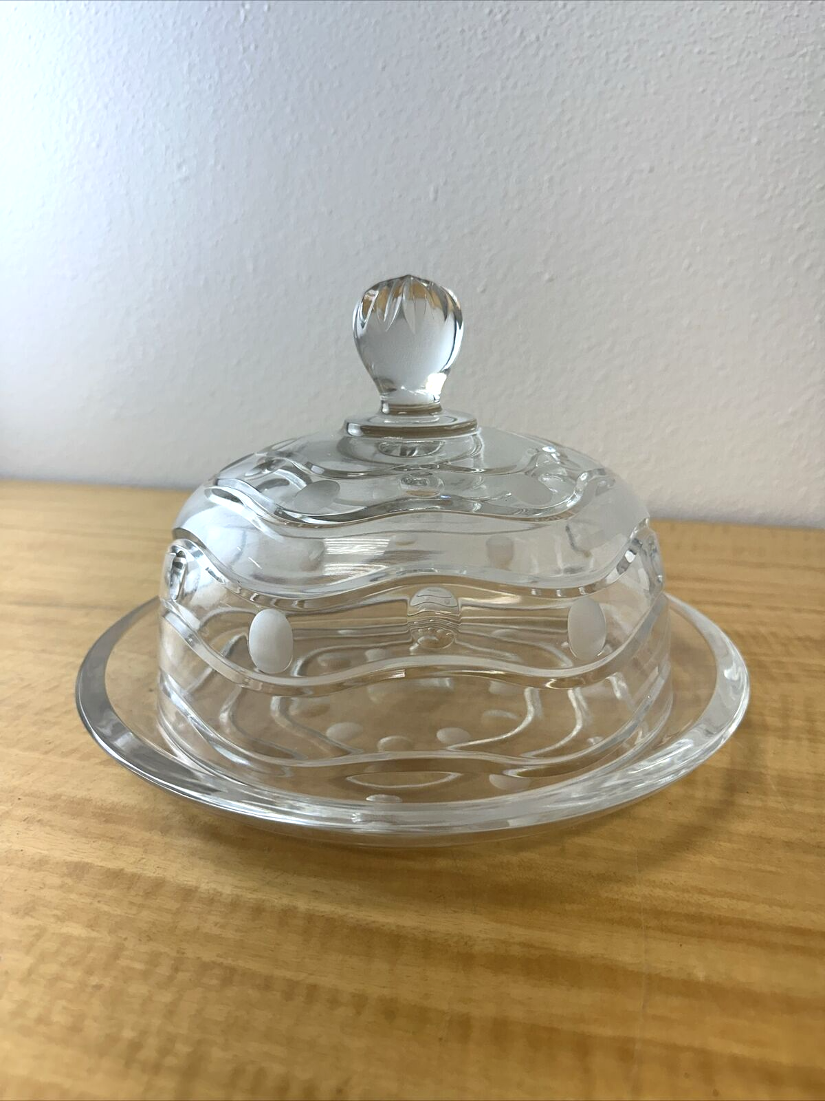 Godinger Deco Covered Plate 24% cut lead crystal dessert keeper made in Poland