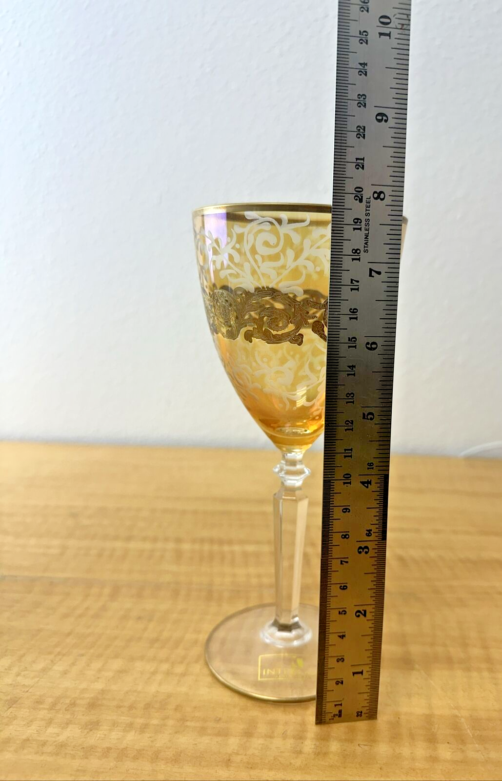 Medici Italy Interglass Goblet Glasses Gold Tone Rim - RARE FIND
