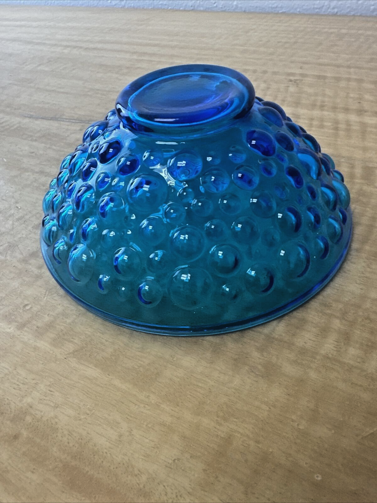 Vintage Blue Hobnail Art Glass Bowl - Blue Glass Dessert Bowl Dish