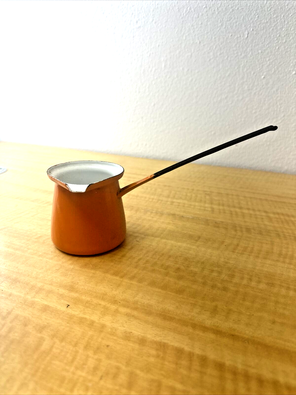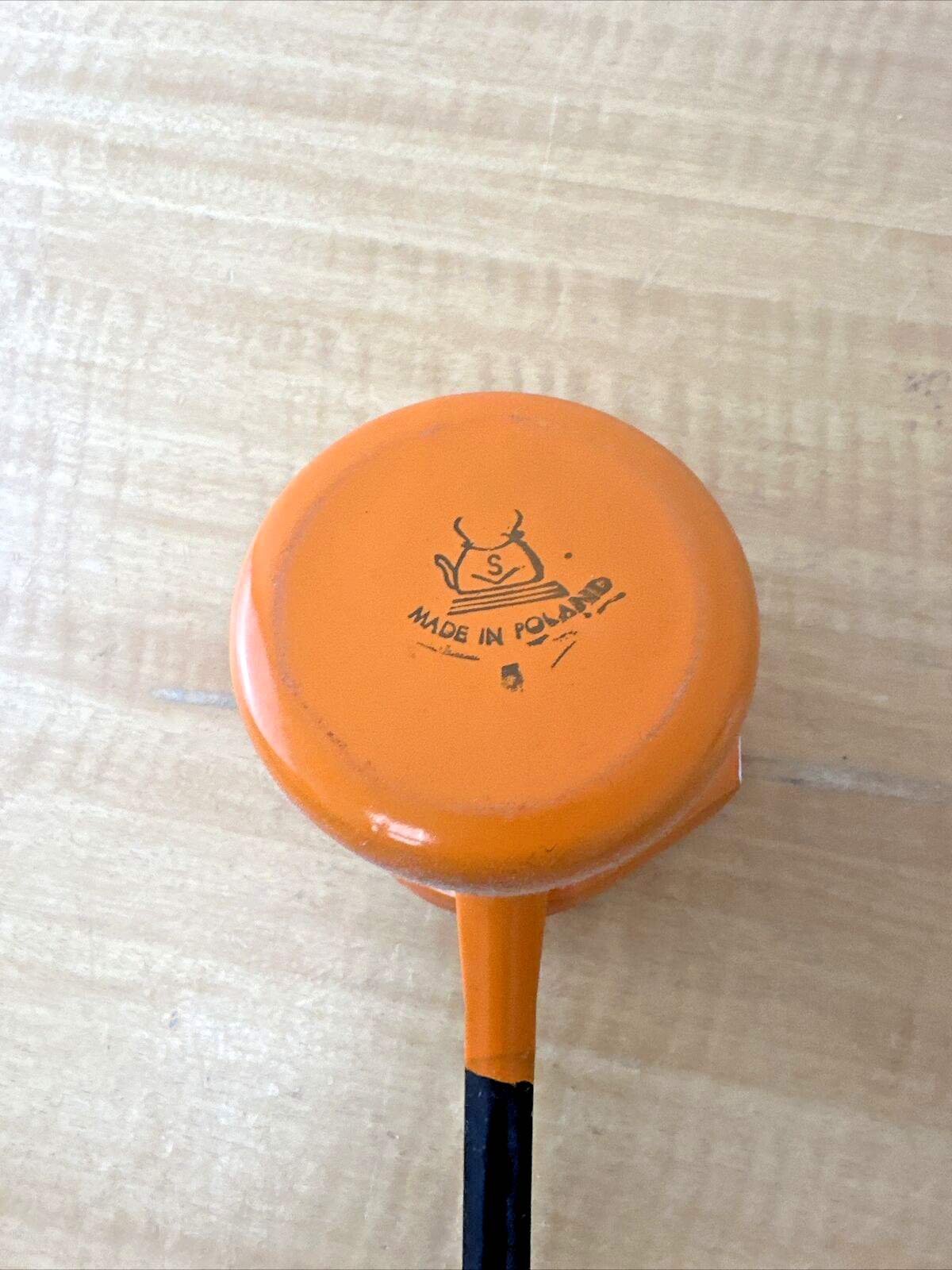Vintage Enamelware Butter Sauce Warmer Ladle with Handle Orange - Made in Poland