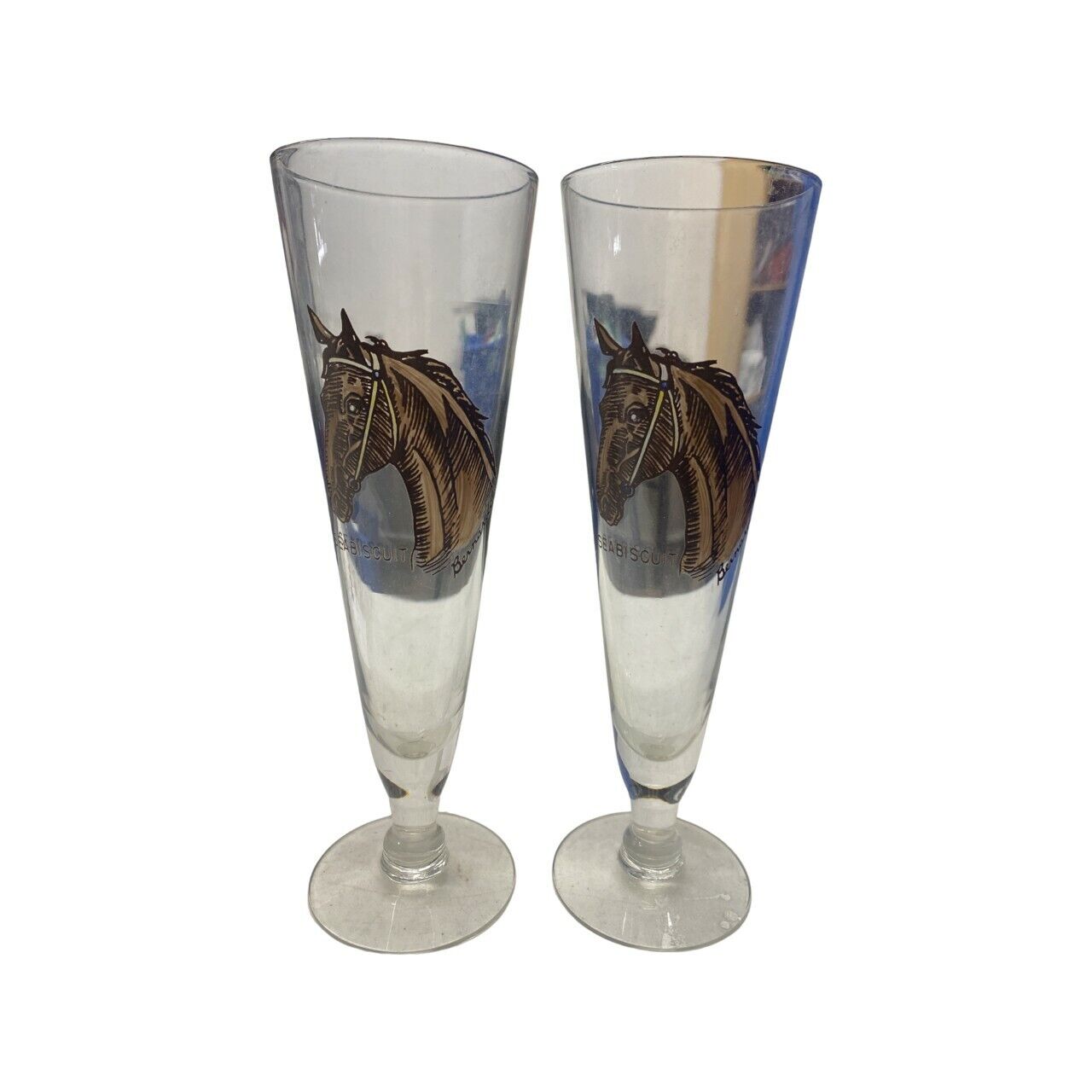 Vintage Bernardi Seabiscuit Pilsner Glass Vase Horse set of 2
