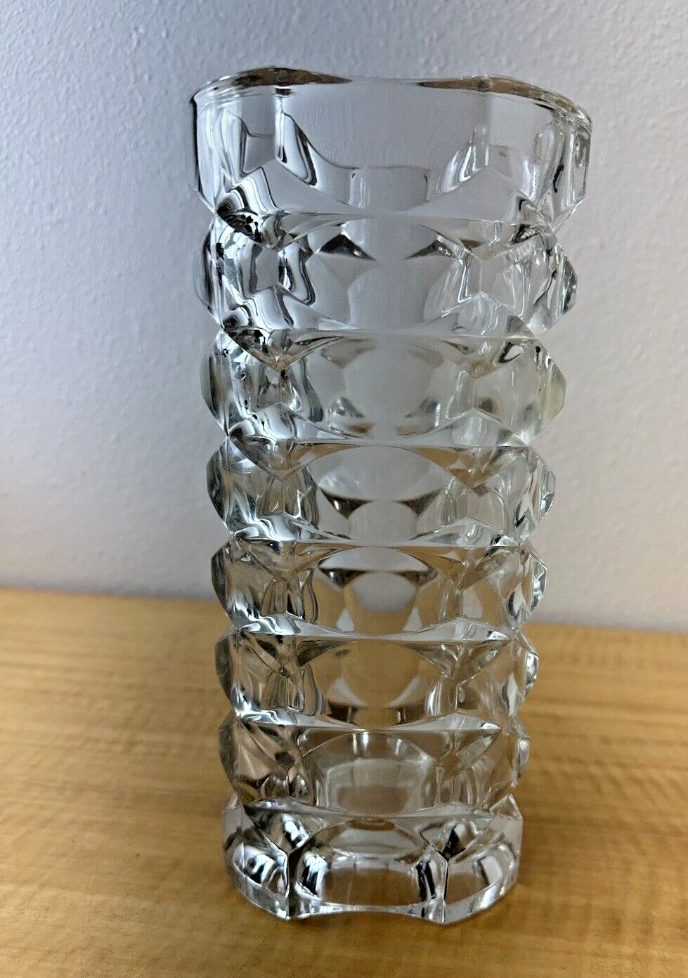 Large Vintage Cubist Geometric Art Deco Style Cut Glass Vase France 9-3/4"