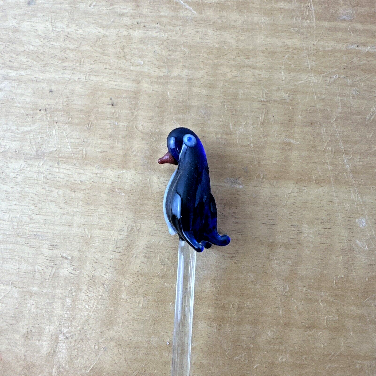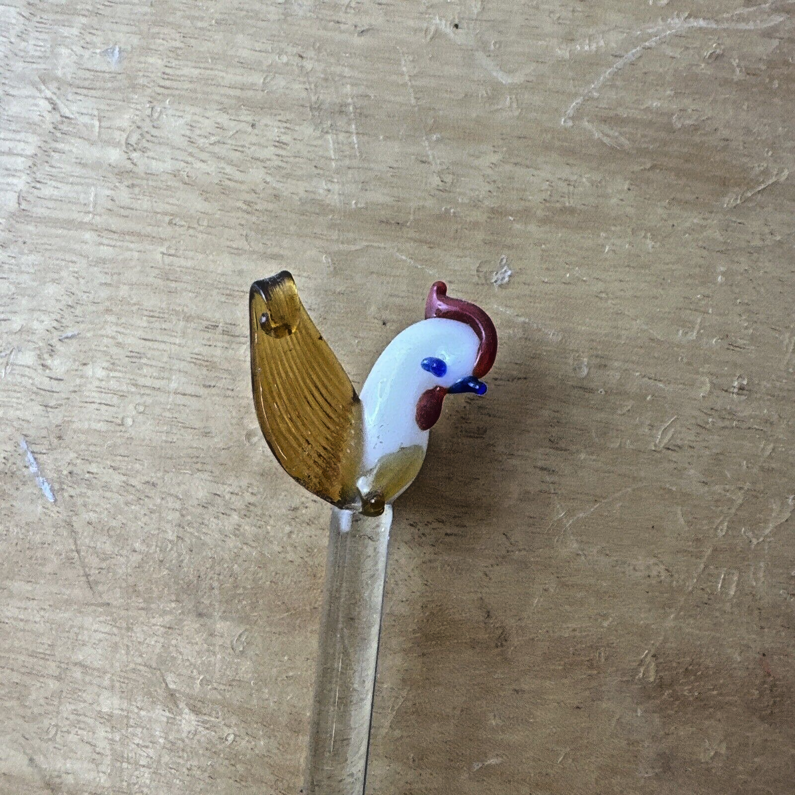 Glass Stirring Swizzle Sticks With Penguin & Rooster, Excellent Condition