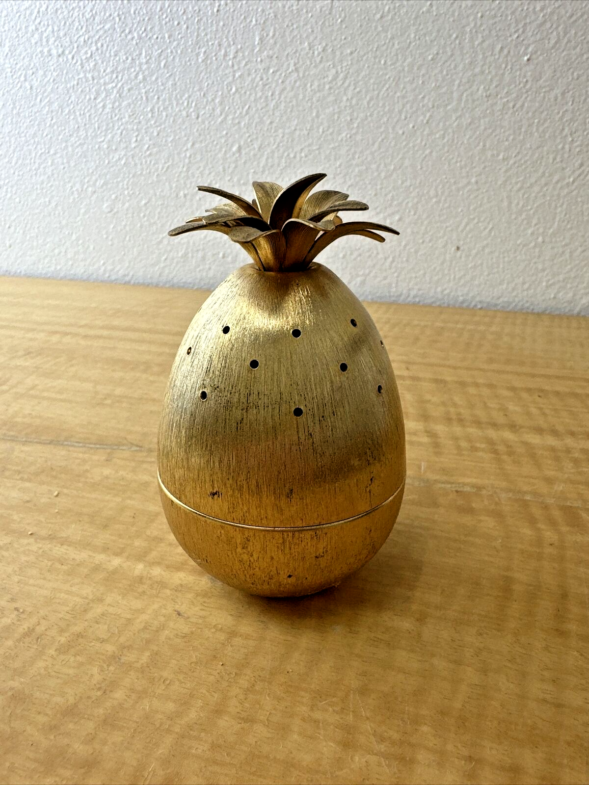 Napier Gold Brushed Metal Pineapple Toothpick Holder Vintage MCM