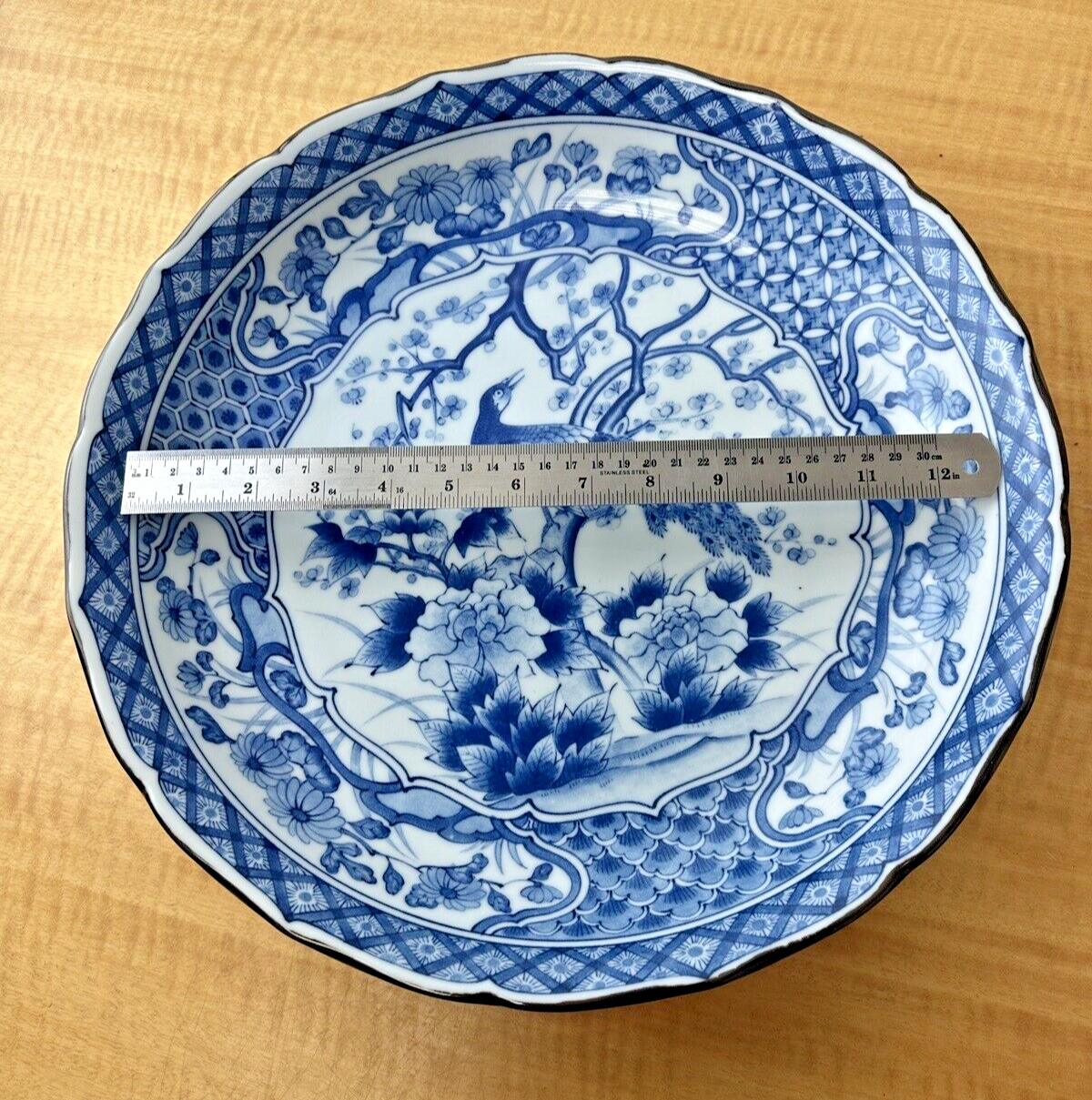 LG ANTIQUE BLUE & WHITE ORIENTAL PORCELAIN DECORATE CHARGER PLATE BOWL- 14 In