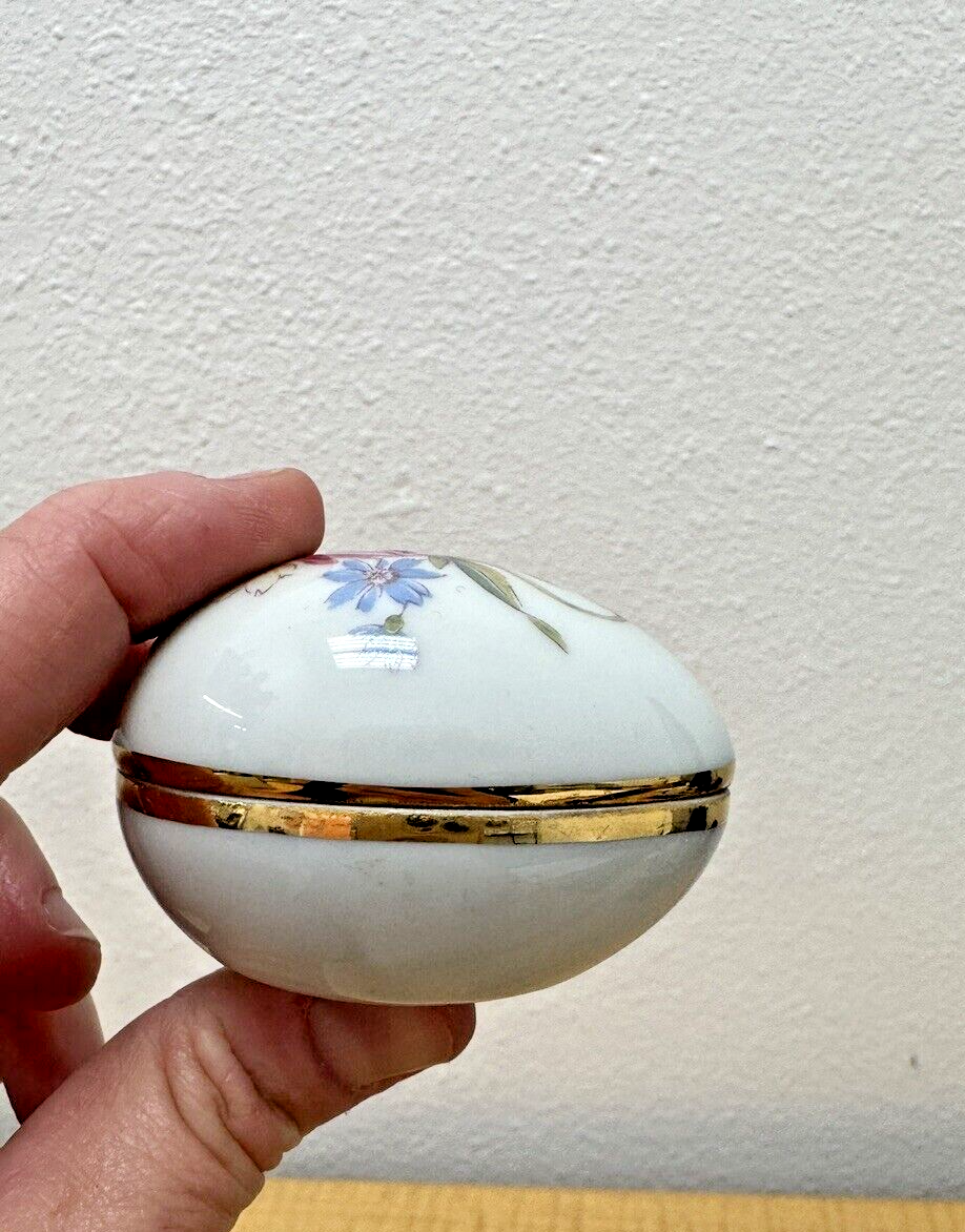 Vintage Limoges France White Porcelain Lidded Egg Box Flowers
