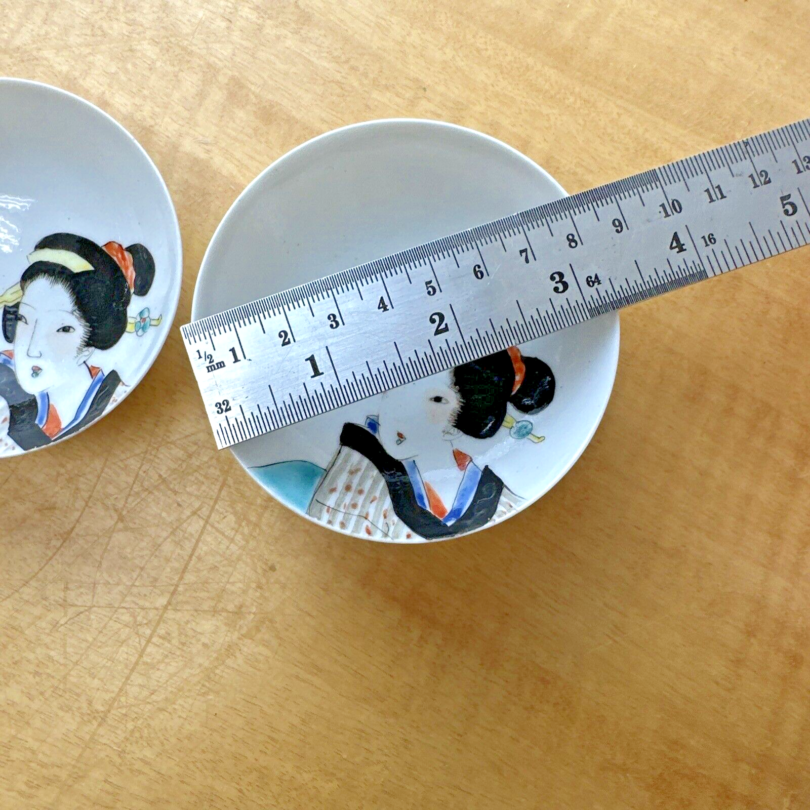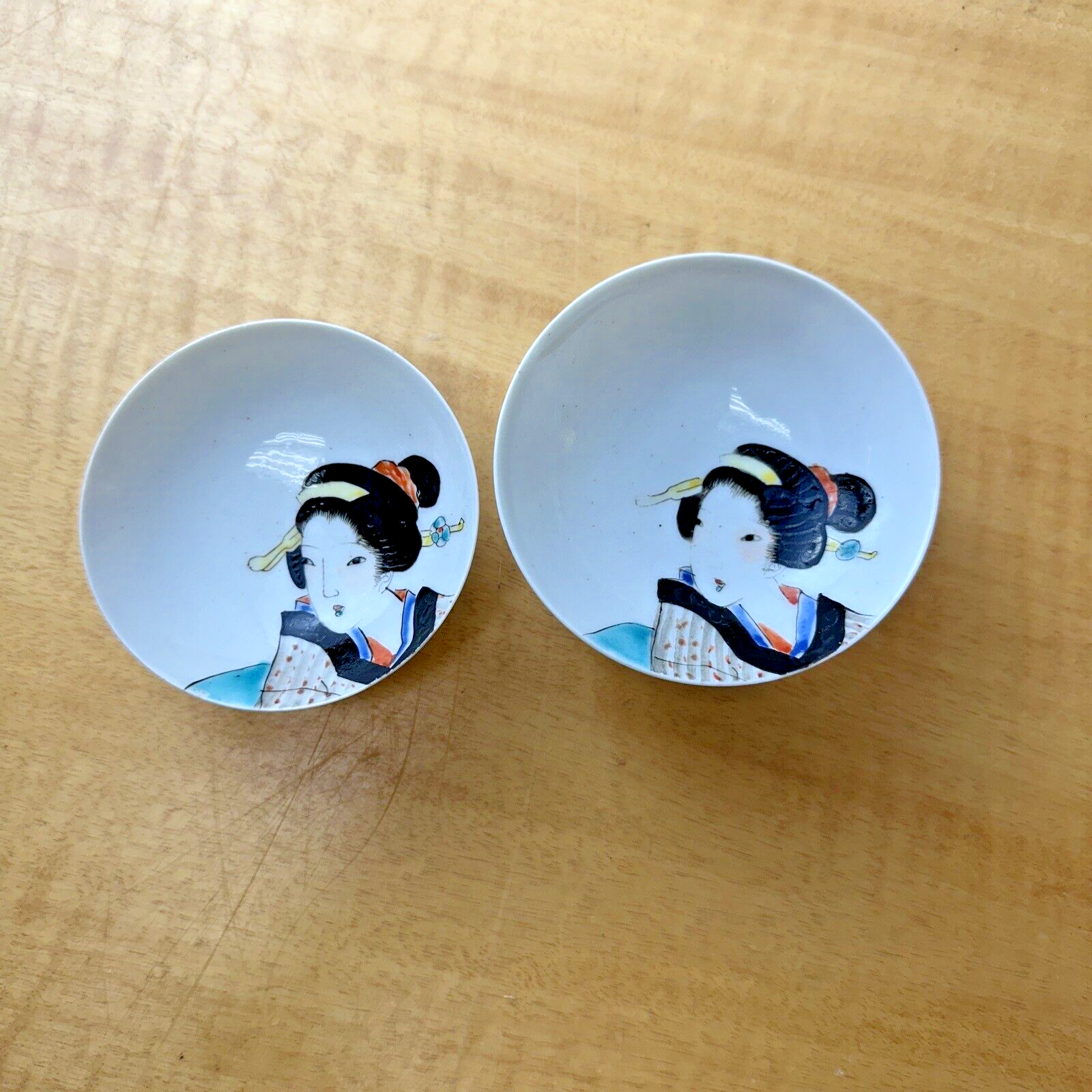 VTG Set of 2 Oriental Japanese Geisha Porcelain Rice Bowls Cups Hand Painted