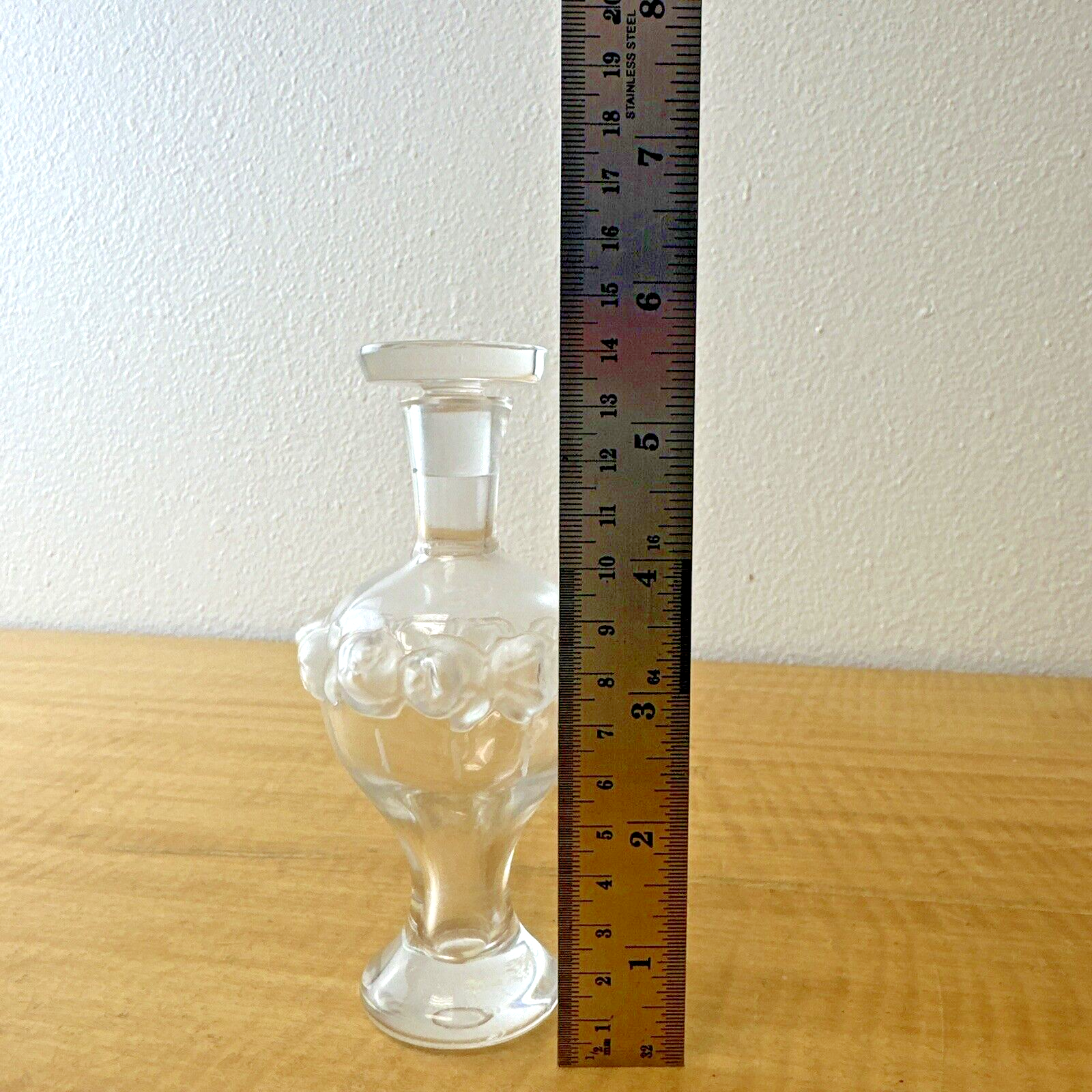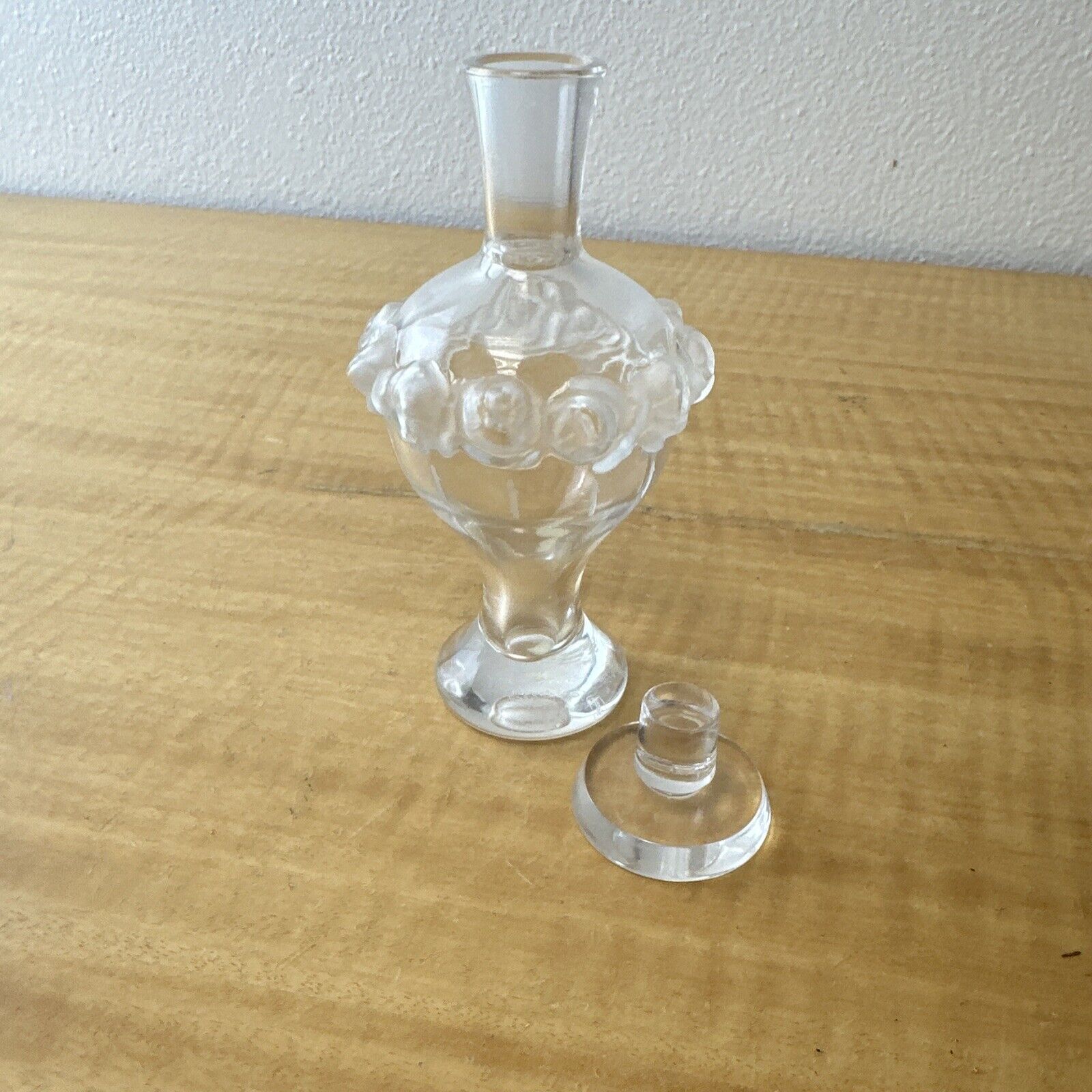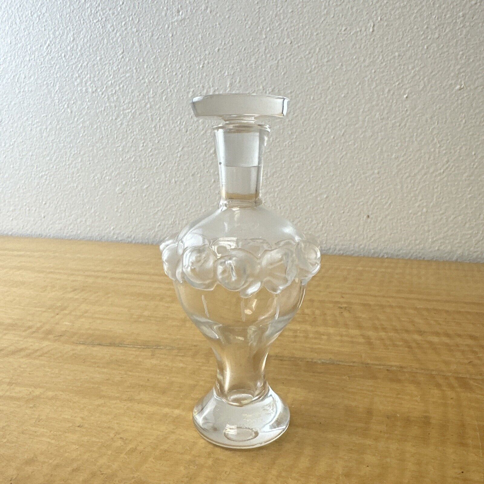Signed Lalique Martine Perfume Bottle w/ Etched Rose Motif.