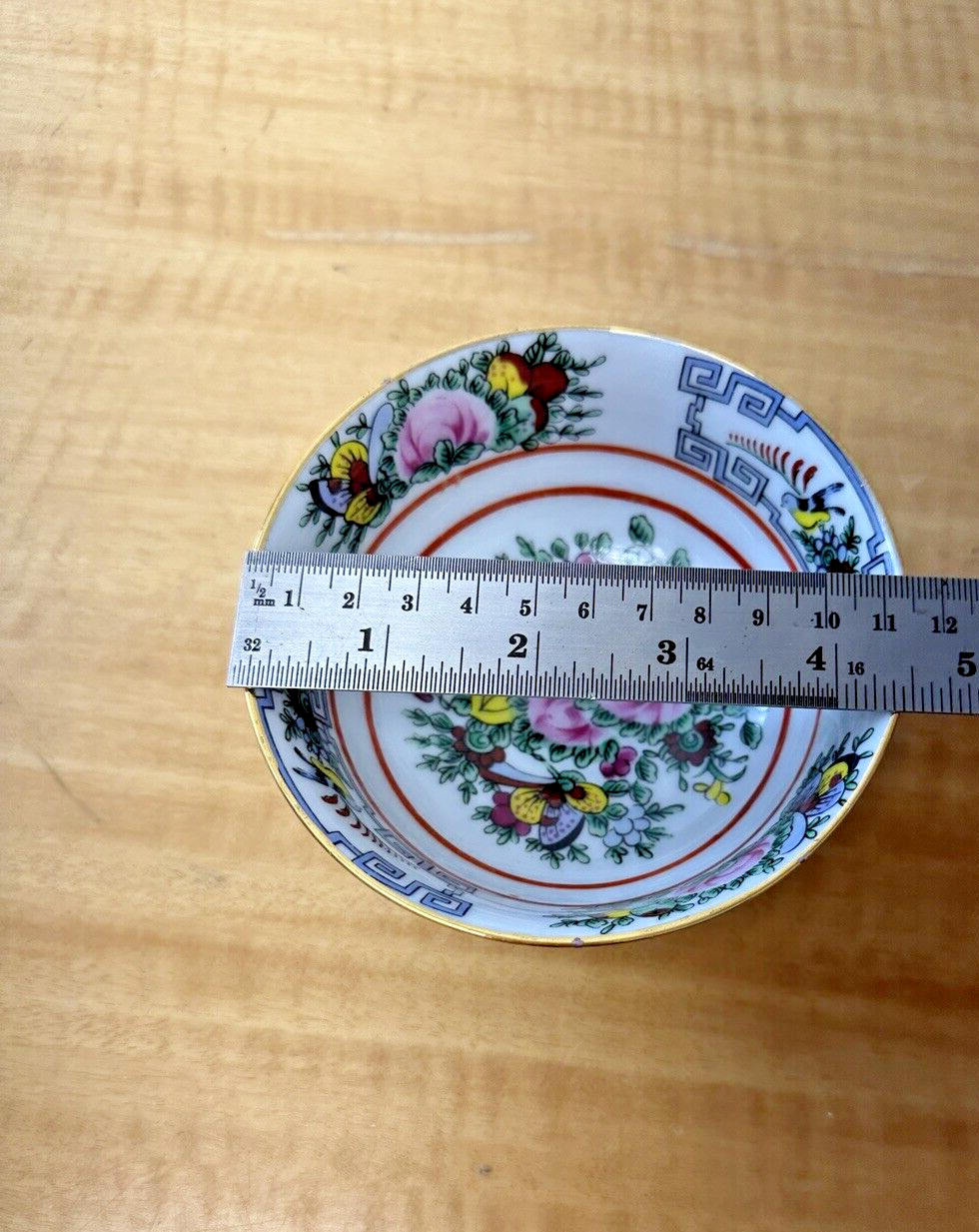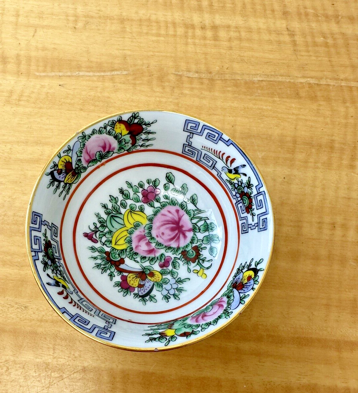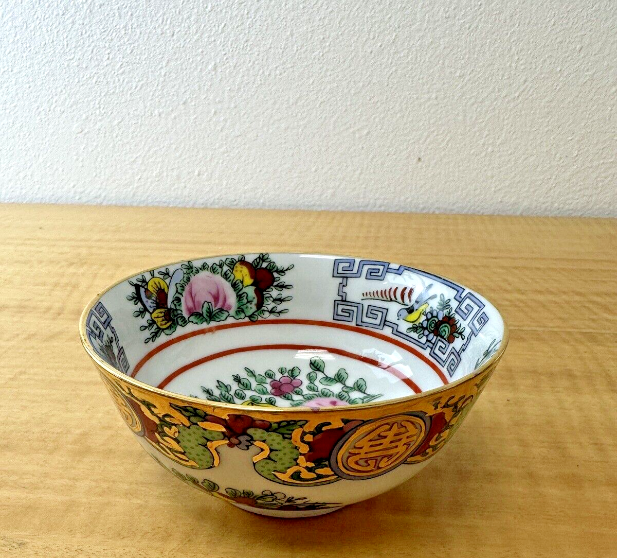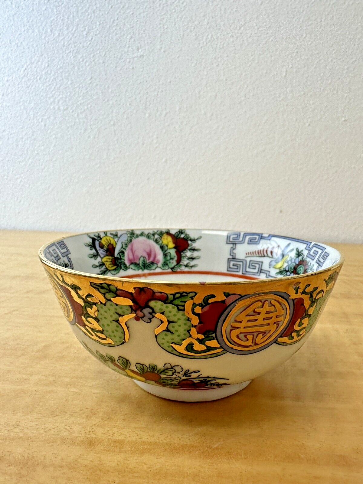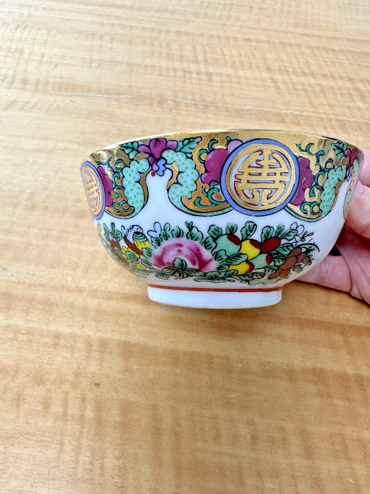 Vtg Rose Canton Asian Floral Birds Gold Porcelain Footed Rice Soup Bowl 4 3/4"