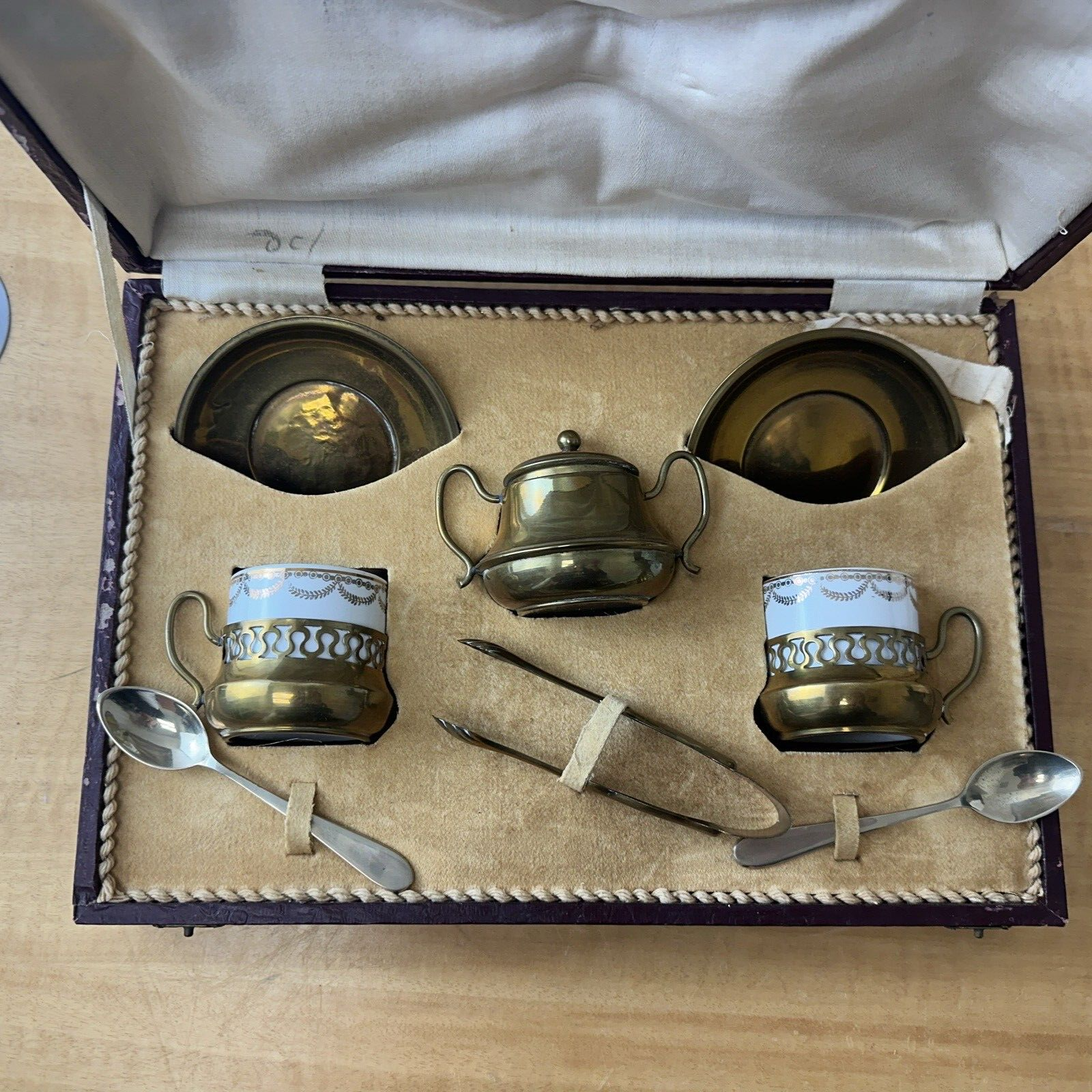 Cups S.C.Richard Service 2 People Brass Tea Set in Case