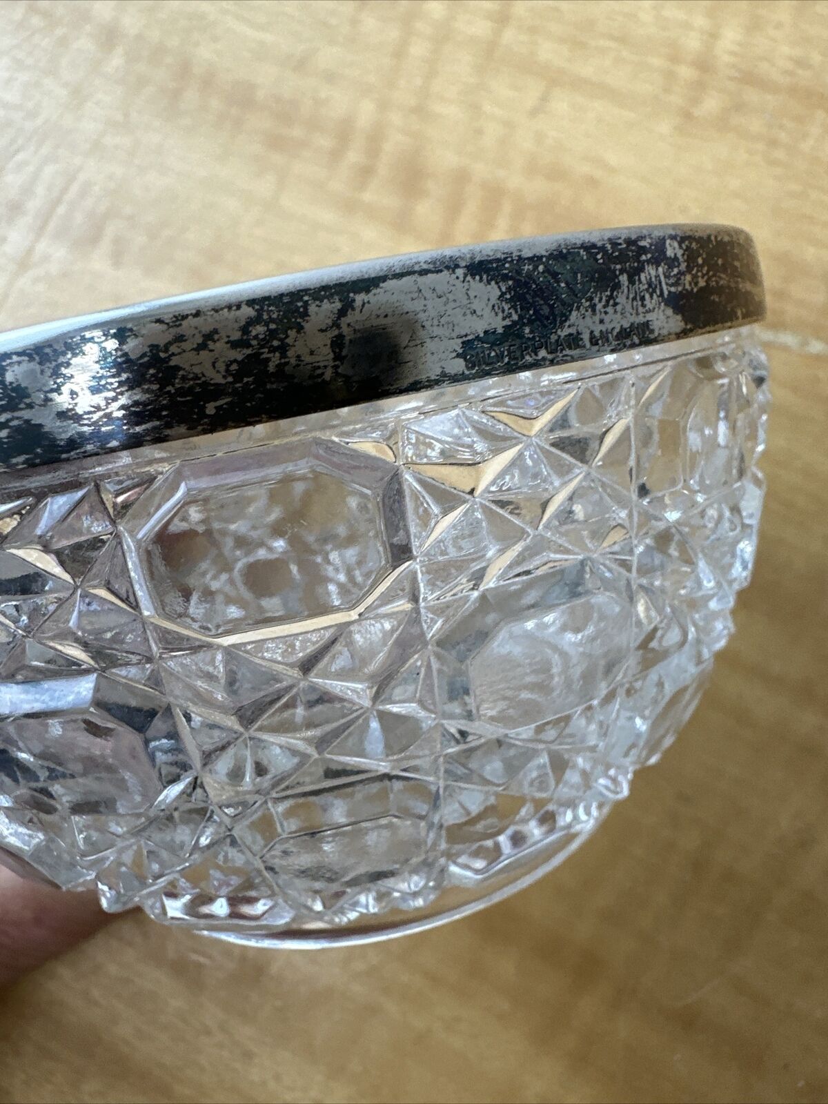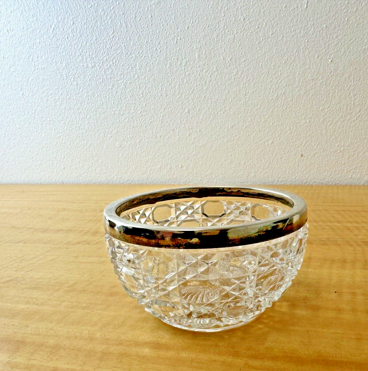 Vintage Heavy Lead Crystal Bowl with Silver Plated Rim Signed Made in England