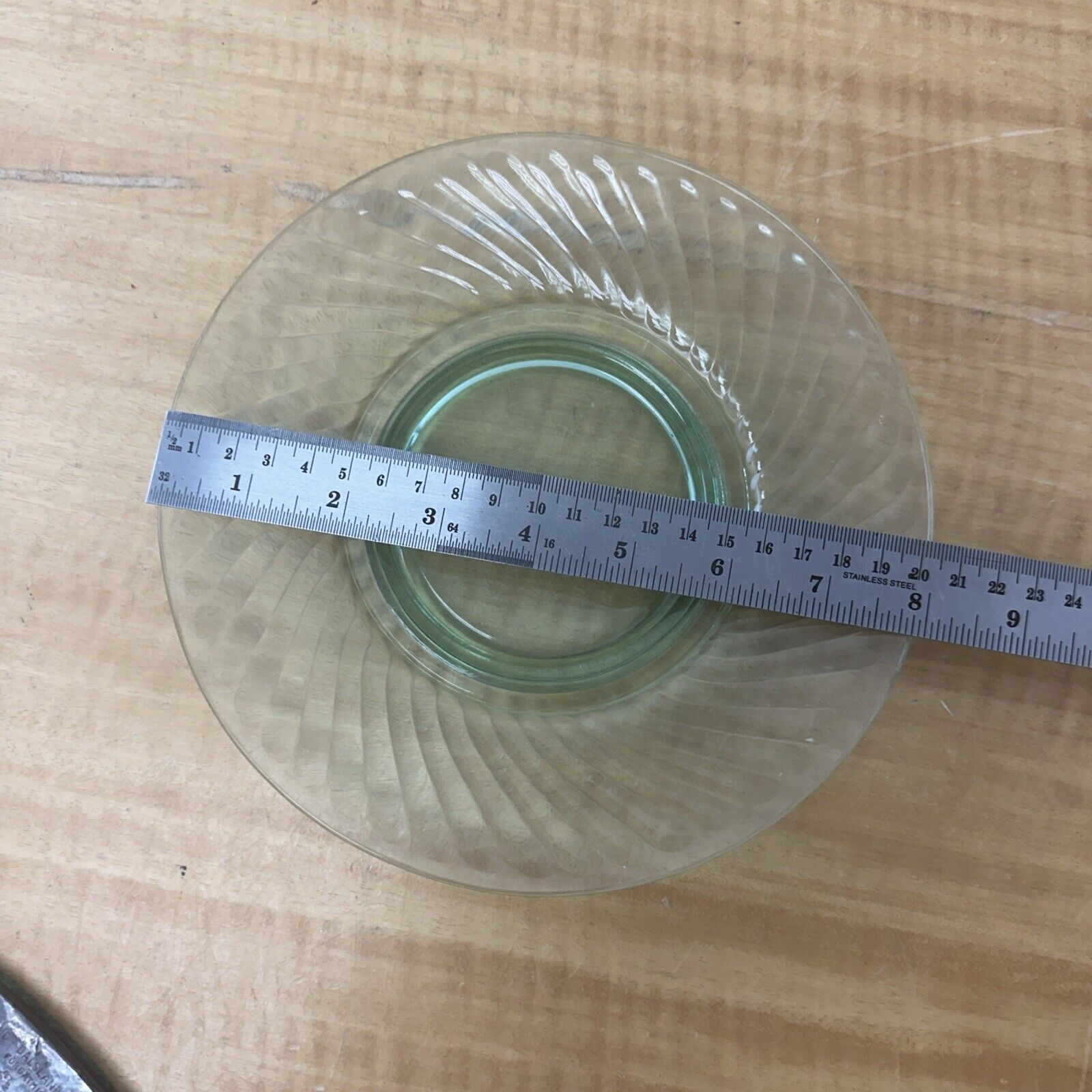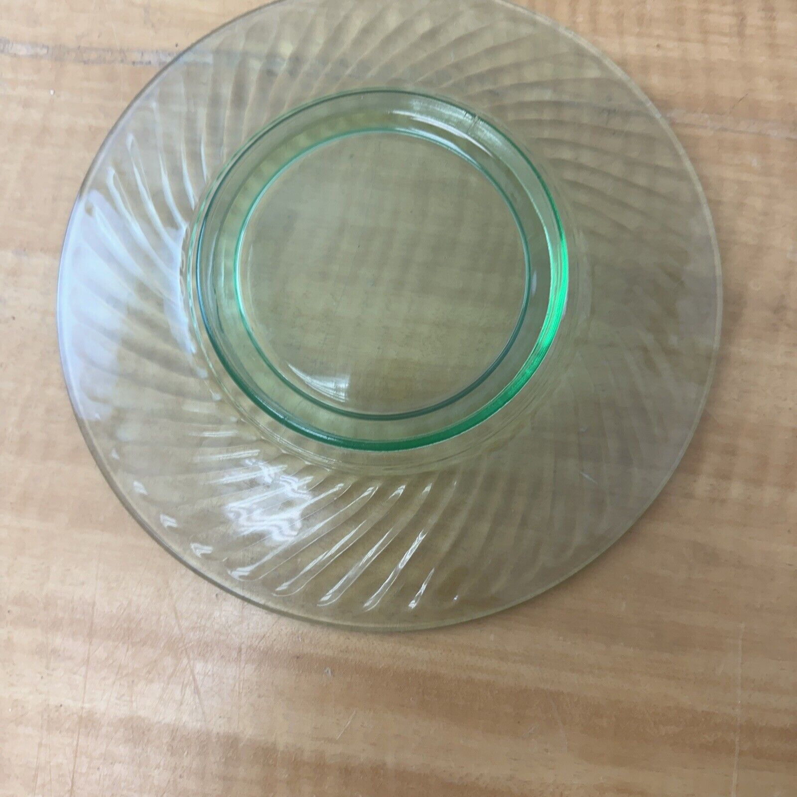 Green depression glass spiral luncheon plate