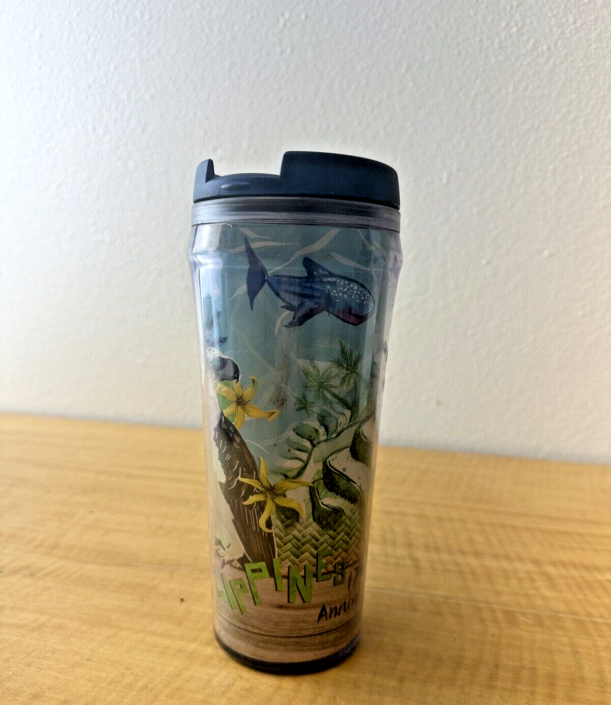 Rare 2004 Starbucks 17th Anniversary Philippine Eagle TUMBLER 16 oz Blue Lid