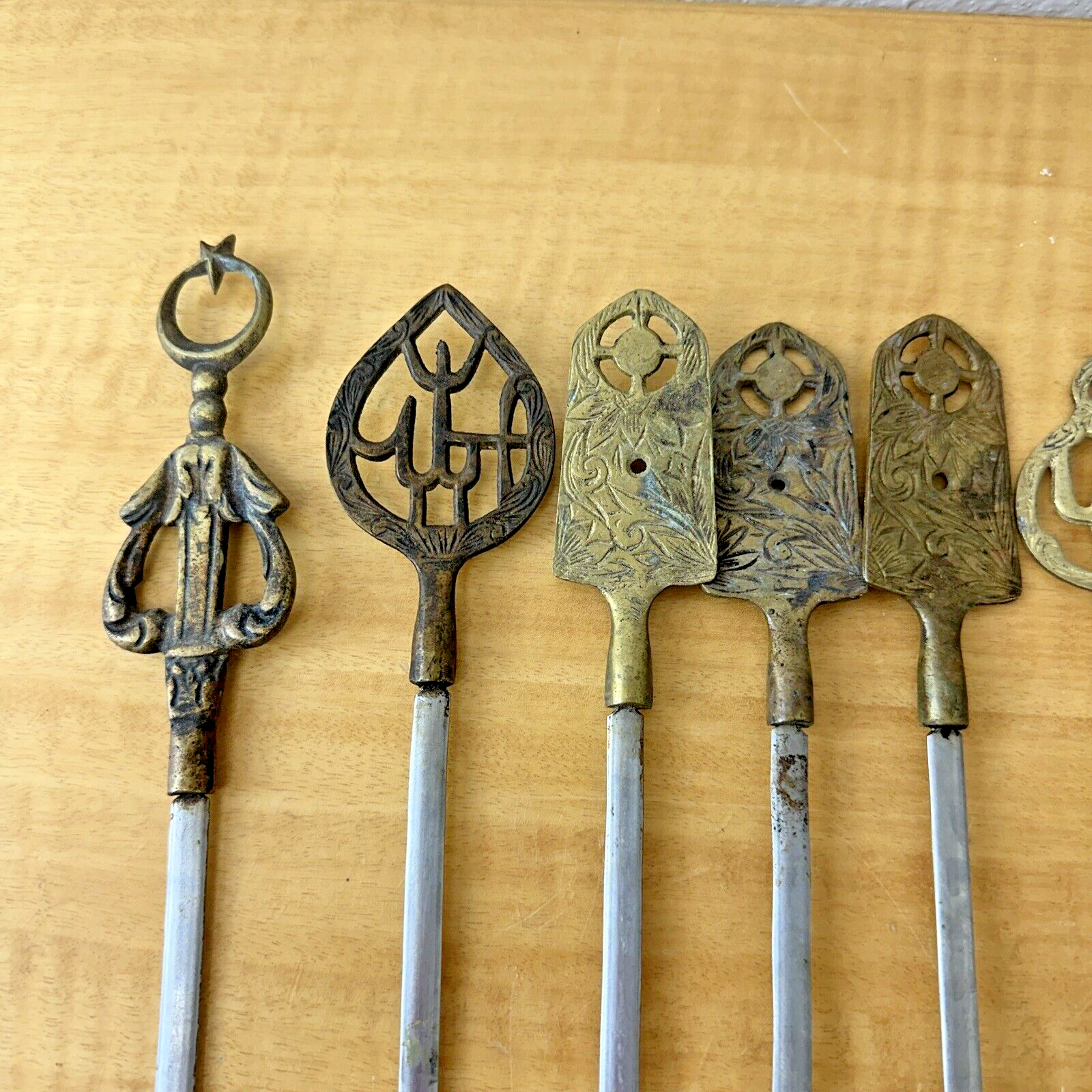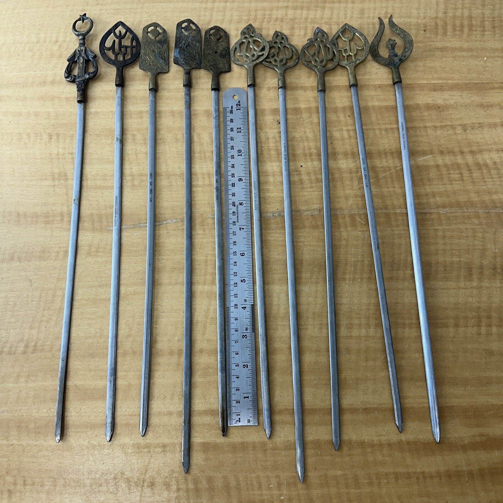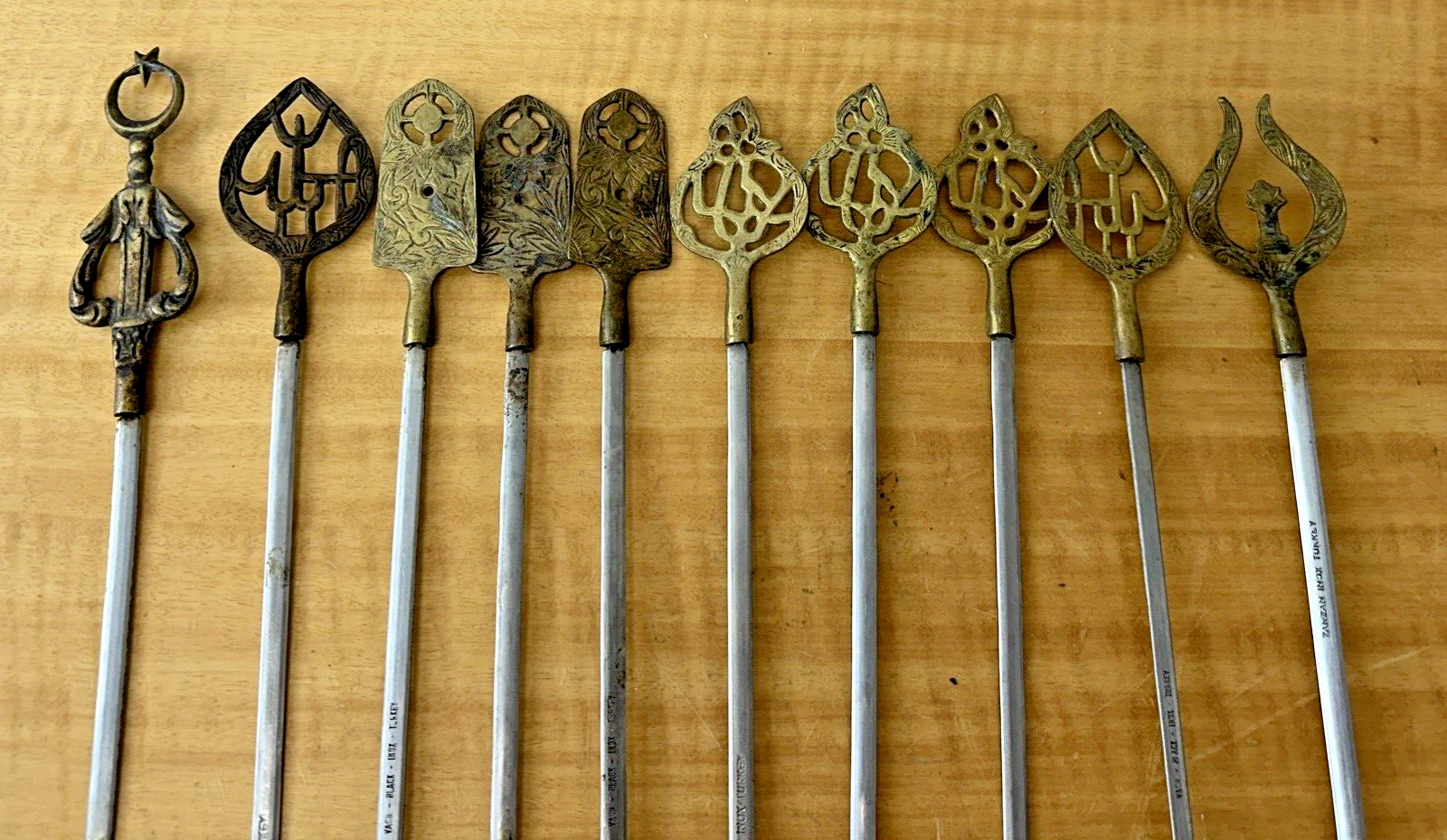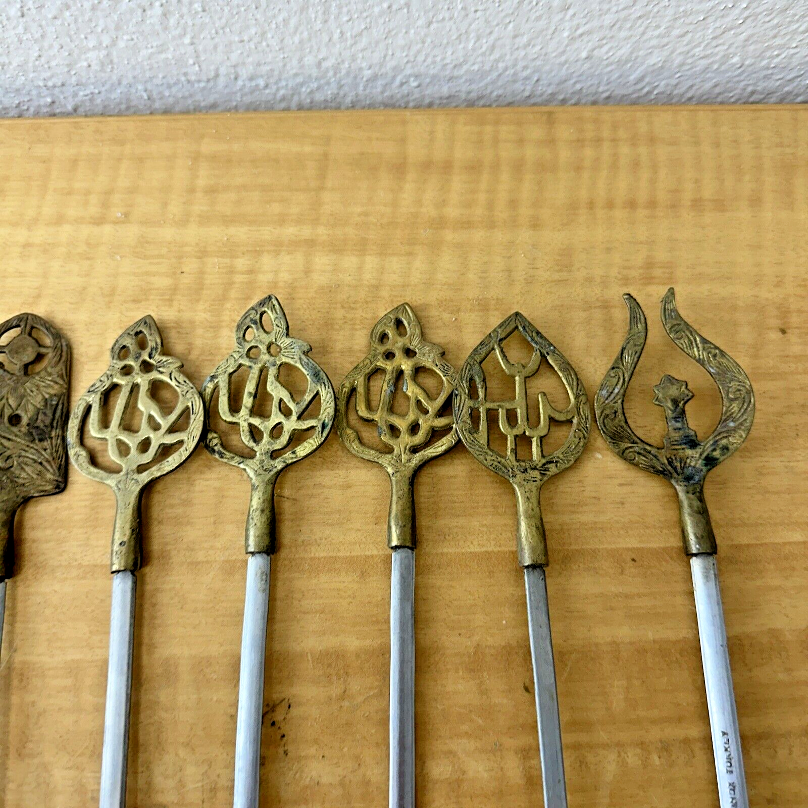 VTG SET (10) Tarzan Inox Turkish Brass Skewers Fondue Spears Assorted Designs