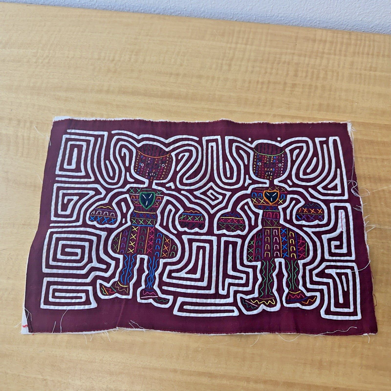 Vintage Kuna Mola Girls Dancing Textile Unframed 15x13