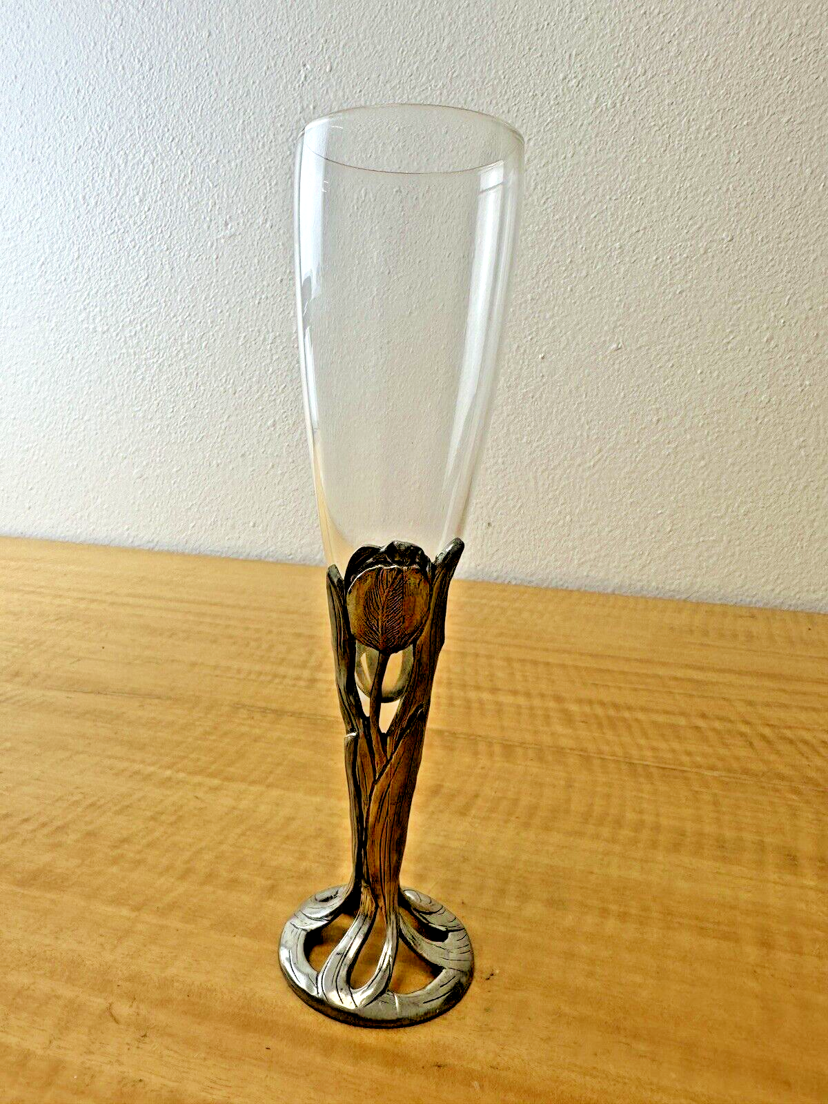 Seagull Canada Tulip Pewter Champagne Flutes 1990 Hand Blown Glass