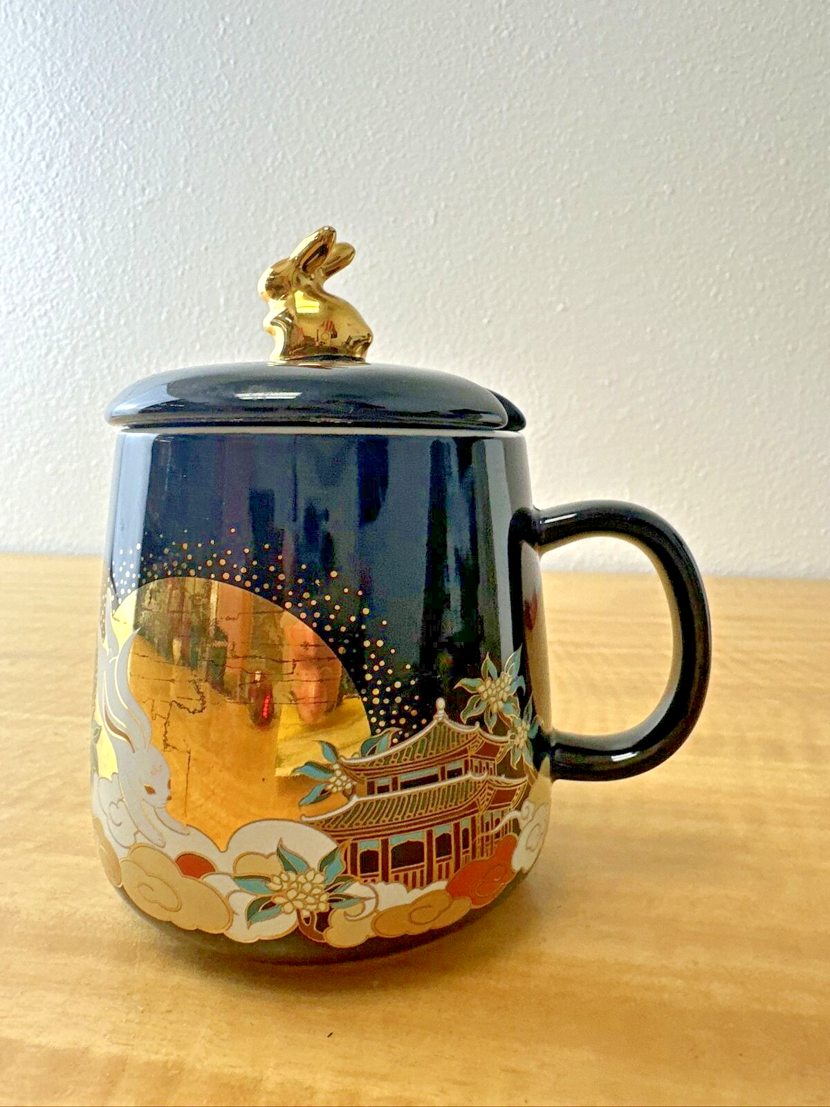 Luxury Mug With Gold Rabbit Lid China Art Design Gifts From The Palace Museum