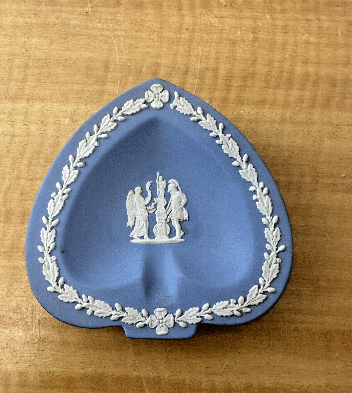 VINTAGE Wedgwood Blue Jasperware Spade Shaped Trinket Dish Made in England #78DB