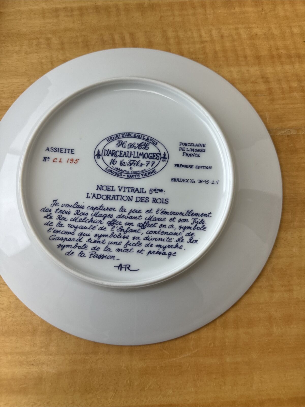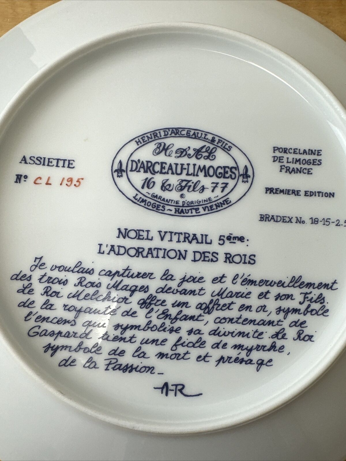 Christmas Plate D'Arceau Limoges The Adoration Of Kings Noel Vitrail Collectible