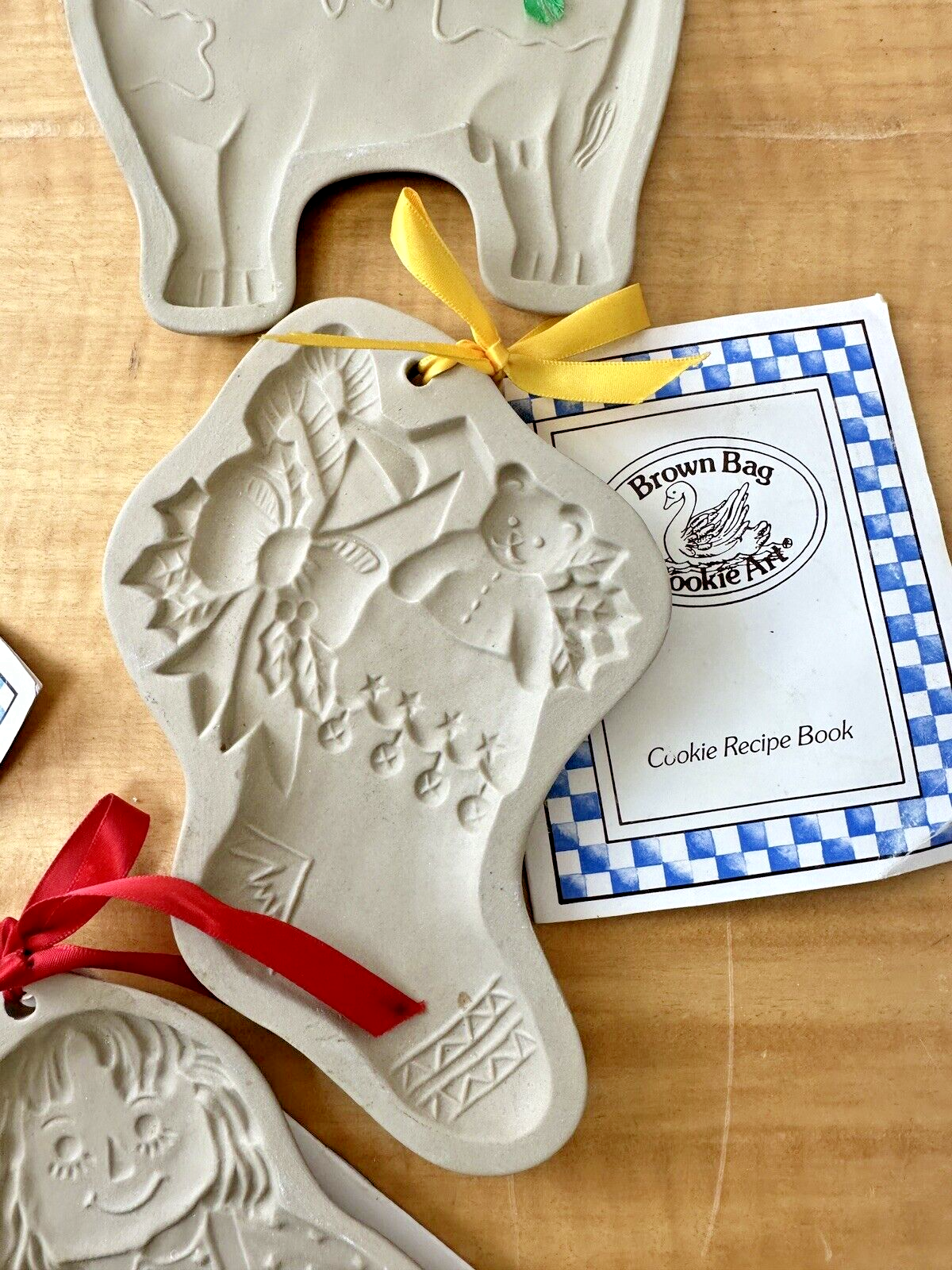 Vintage Brown Bag Cookie Art Mold With Booklet- Set of 5