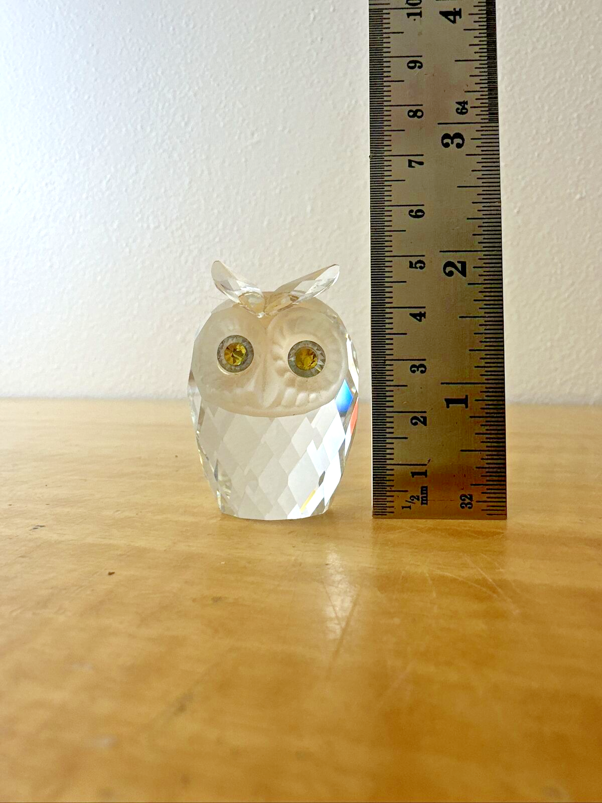 Swarovski Crystal 2" Owl Retired Green / Yellow Eyes